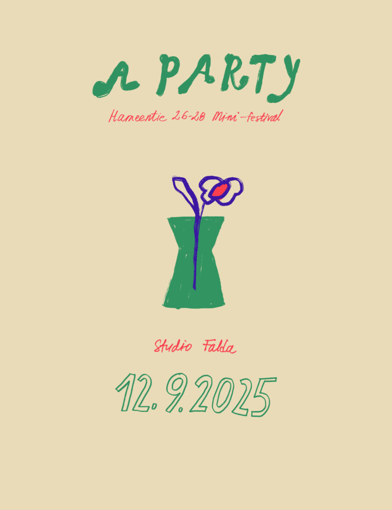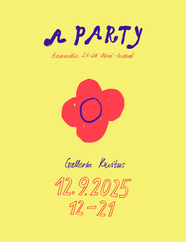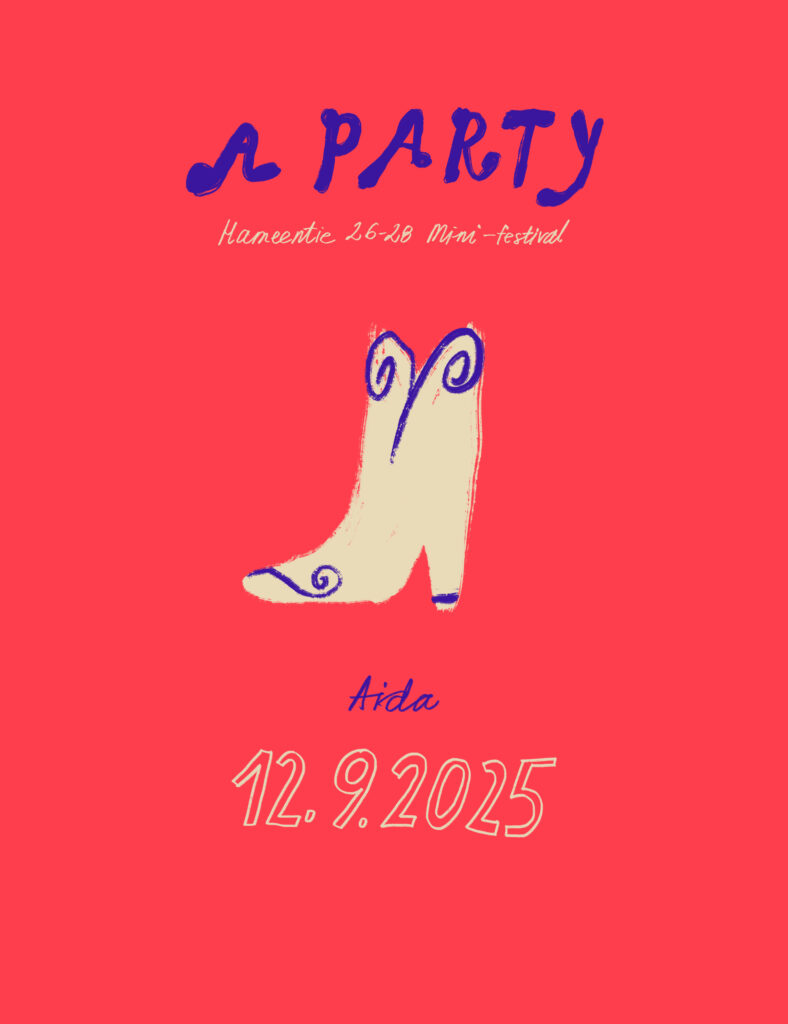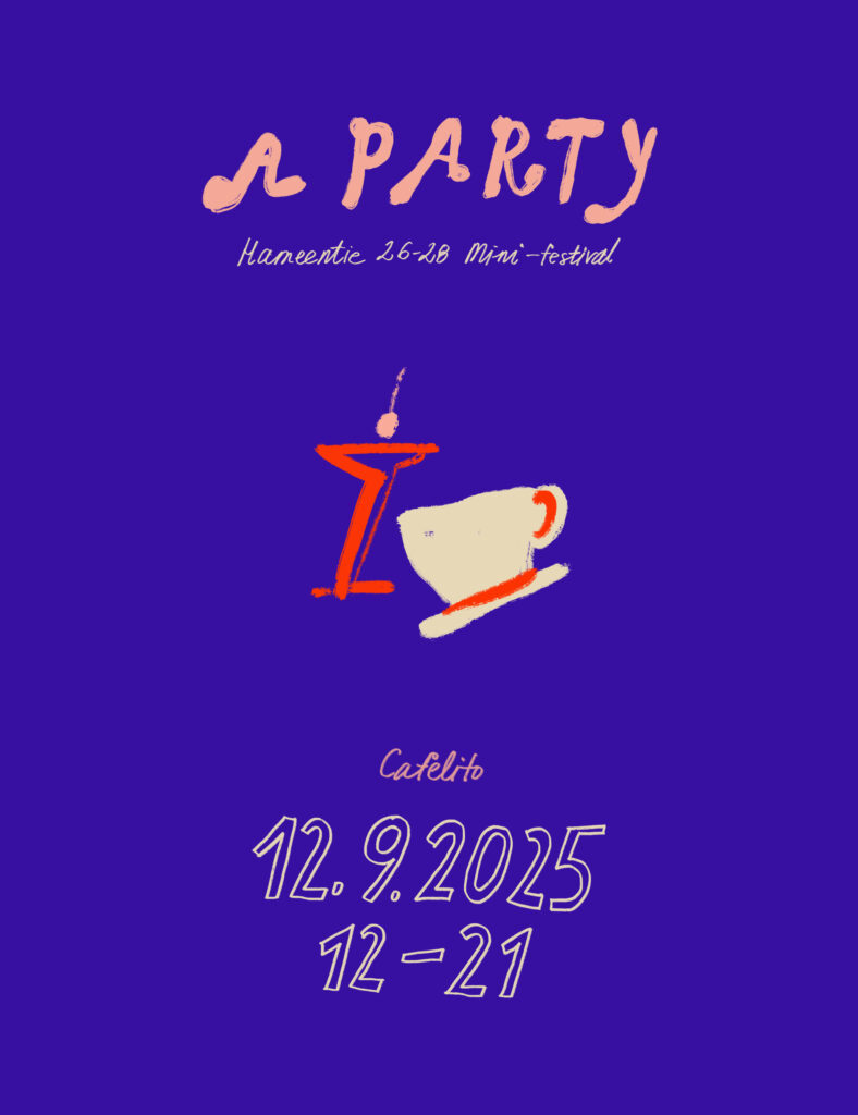 APARTY! A creative, communal pop-up mini-festival at Hämeentie 26-28. Featuring artist talks and culinary delights, coffee, wine, jewelry, vintage, making and experiencing art, and music. Creating a communal future: Galleria Kuvitus/The Finnish Illustration Association, Studio Falda, Aida, Cafelito & Maukku. With: Dora Dalila Cheffi, Olya Tsikhanchuk, Anna Sidorova, DJ Lauri Koo and Leandro.