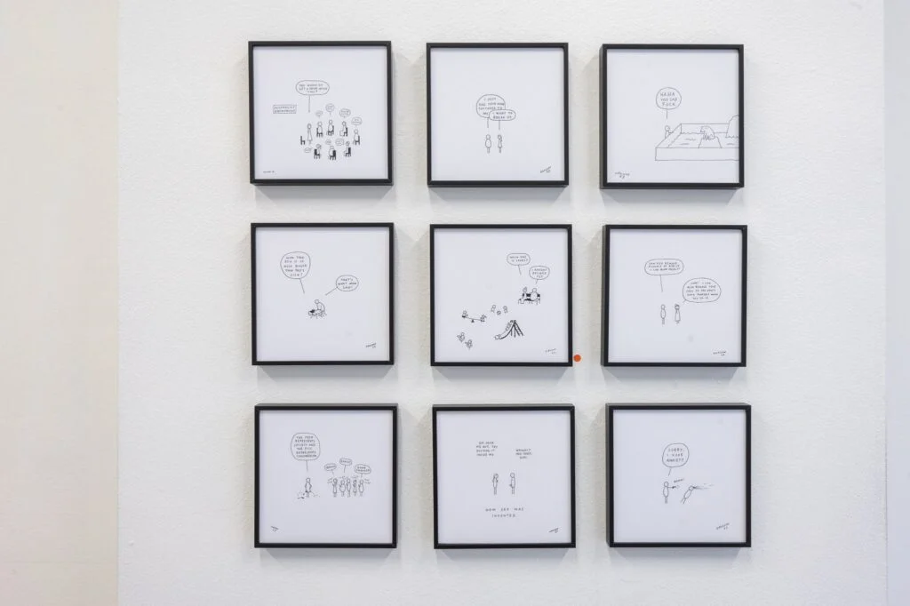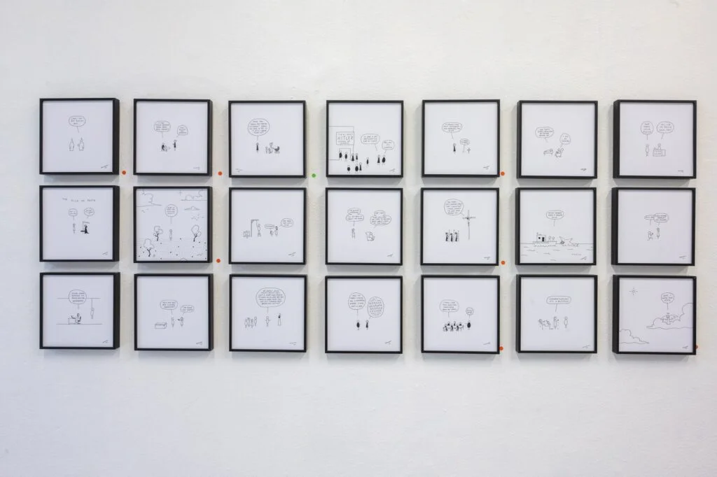 Dagsson likes to start drawing and see what happens. That’s how he started his career as a cartoonist in fact. He drew a couple of stick figures without knowing what they were about to say. All of a sudden, it turned out that having no idea can be a gateway to having multiple ideas. So many ideas that it’s impossible to carry out all of them. That’s just what Dagsson’s first international solo exhibition is about: A collection of ideas he never got around to before, because he was busy working with other ideas. Meanwhile, Dagsson is the first international guest of Galleria Kuvitus which will finish its first five years in existence in February. The exhibition opens right before the stand-up tour Dagsson Does Finland, organized by W&T Comedy.