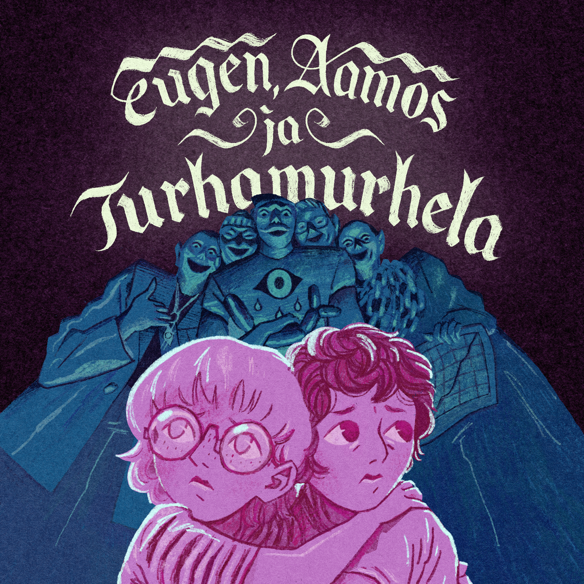 Iiva Vilvas’ illustration exhibition Eugen, Aamos and Turhamurhela is based on the fairy tale novel of the same name (Enostone, 2025) written by Niina Hakalahti. Vilvas has created the illustrations in black and white mixed media, which suit the dark atmosphere of the book. The main medium and motif related to the plot of the book is charcoal.