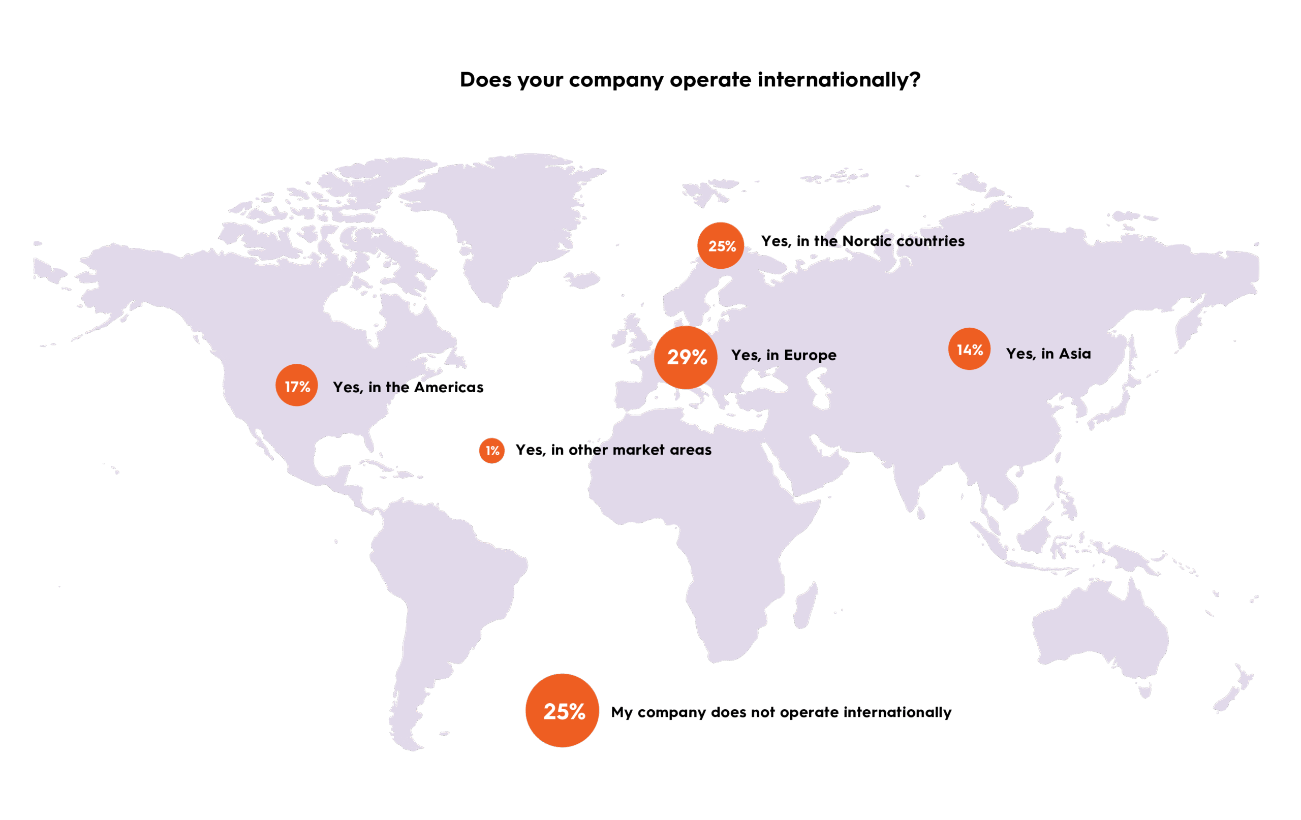 With a small domestic market, illustrators have to look abroad for growth, and the illustration industry is highly international compared to other industries. As a digital business, the international illustration work is relatively straightforward and the potential market for Finnish illustrations is huge. 29% of illustrators report activities in Europe, 14% in Asia, 17% in the Americas, 25% in the Nordic countries, and 1% in other markets.