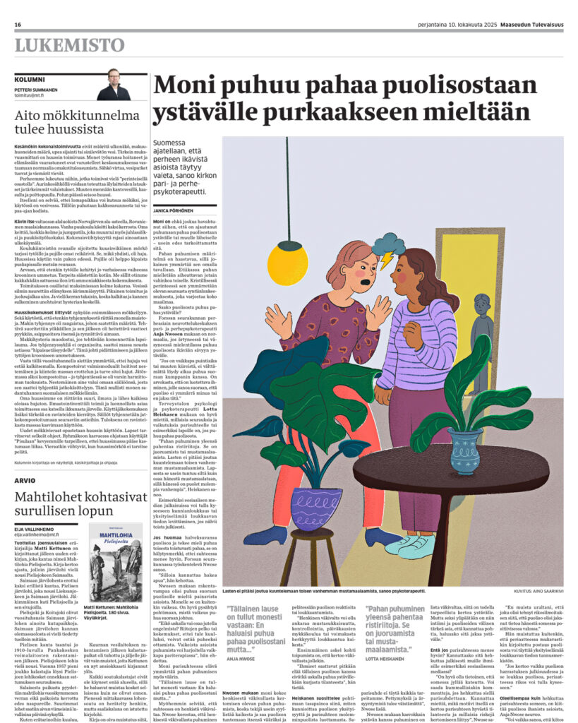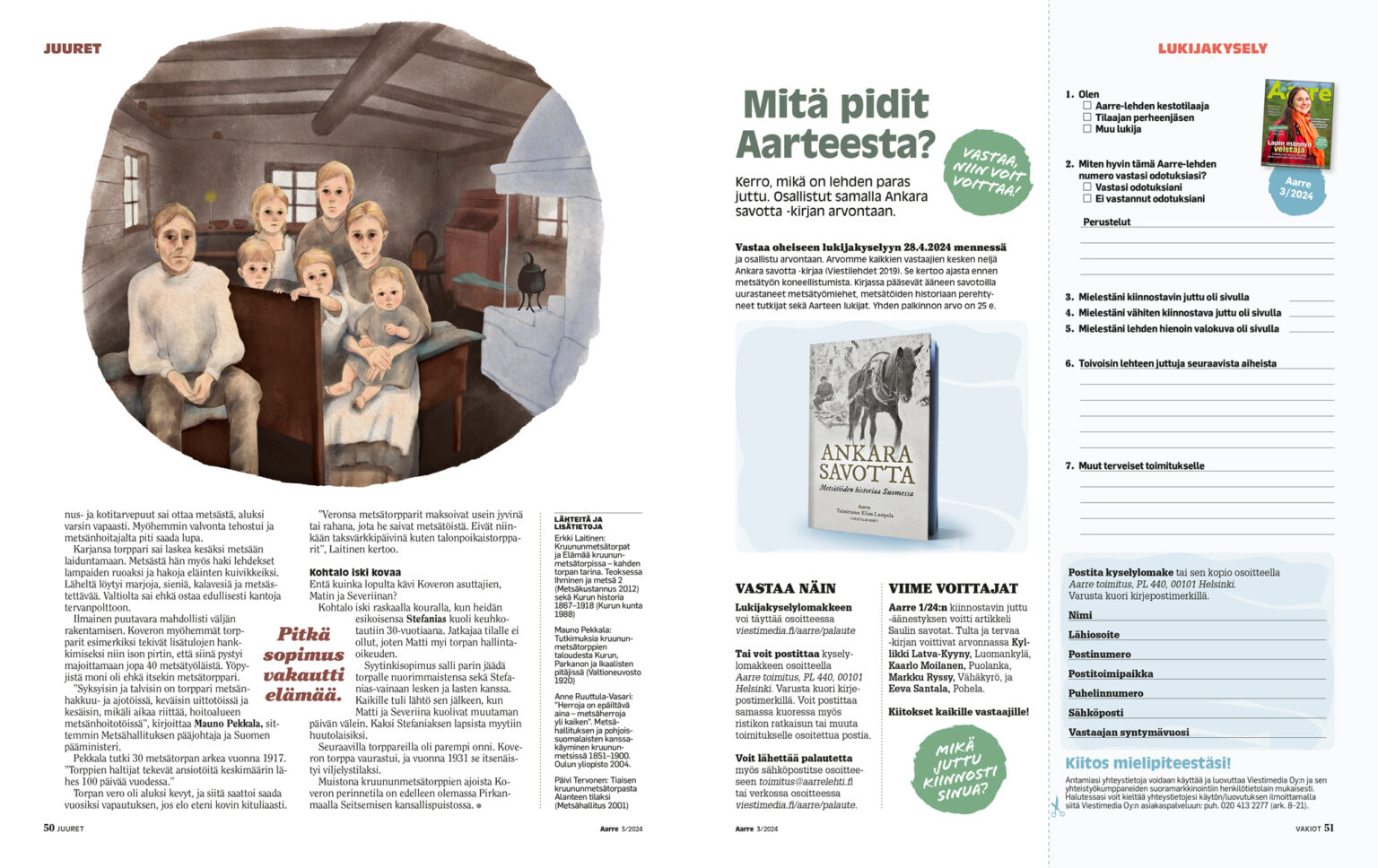 Aarre magazine, Maaseudun Tulevaisuus newspaper, Viestimedia, Pirta magazine, S&A magazine, Finnish Literature Society, Alienn Enterprise Oy