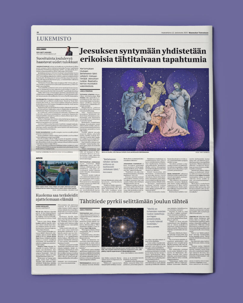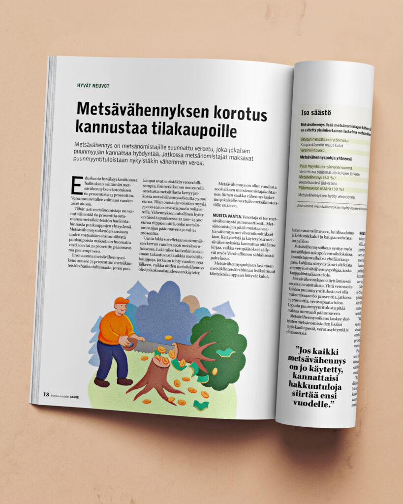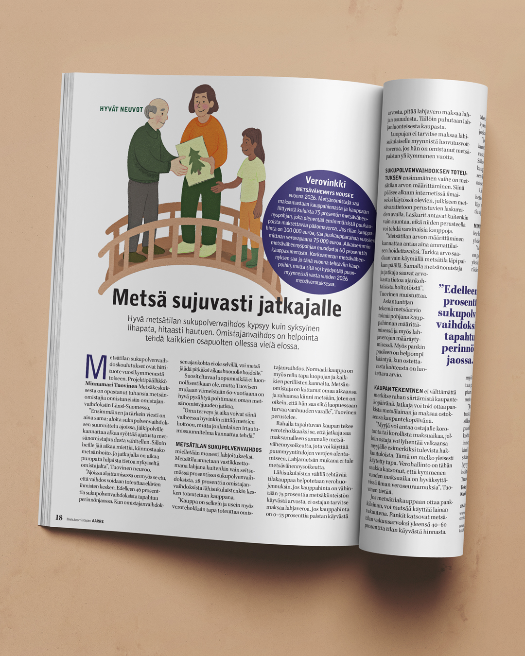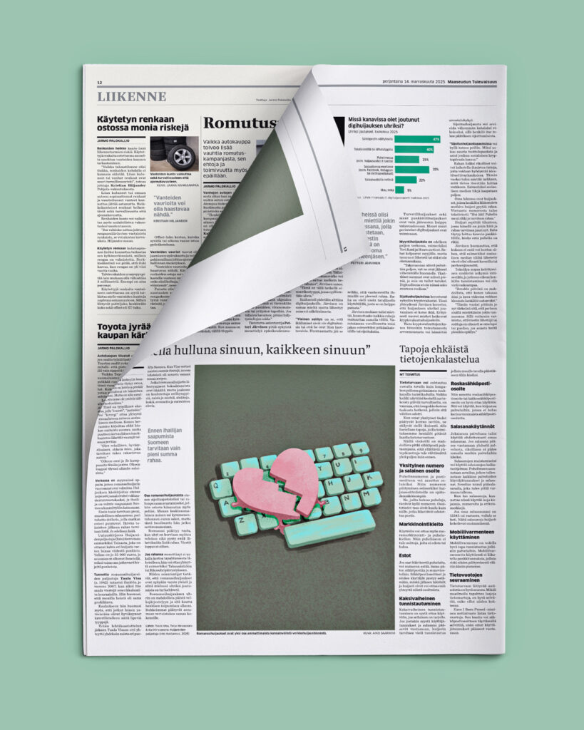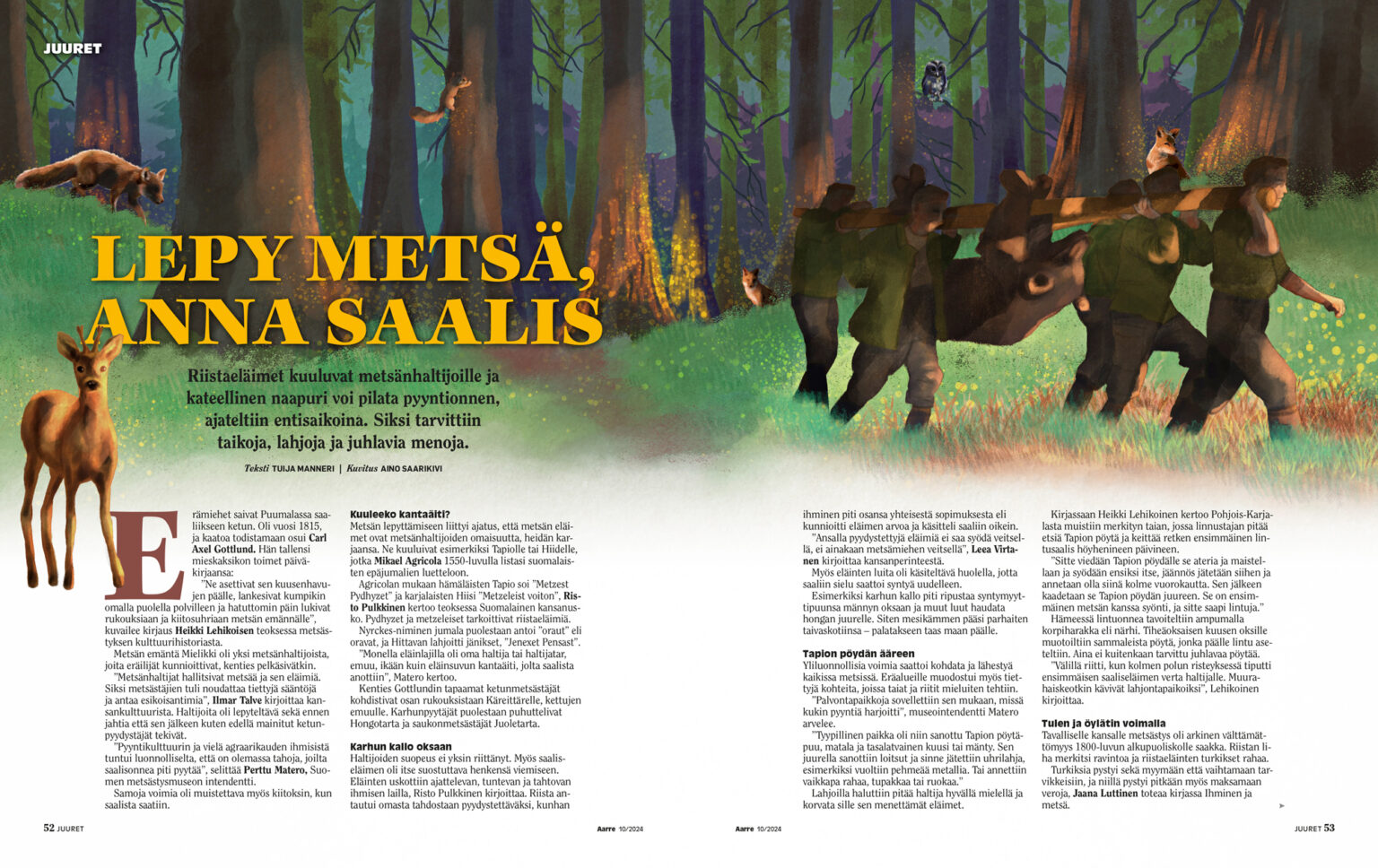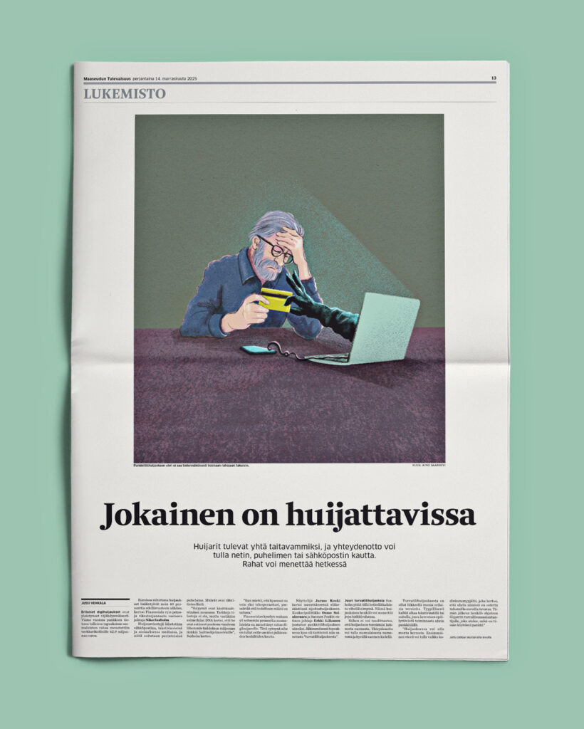 Hi! I'm Aino Saarikivi, a Helsinki-based graphic designer and illustrator and a visual designer with 20 years of experience in print media. I'm currently working at Viestimedia as a graphic designer and illustrator. I can work in Finnish and English.