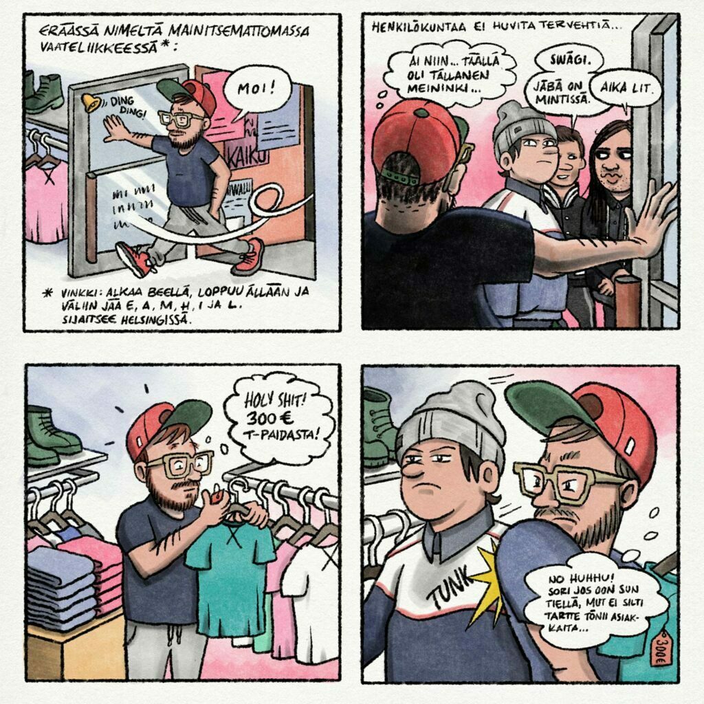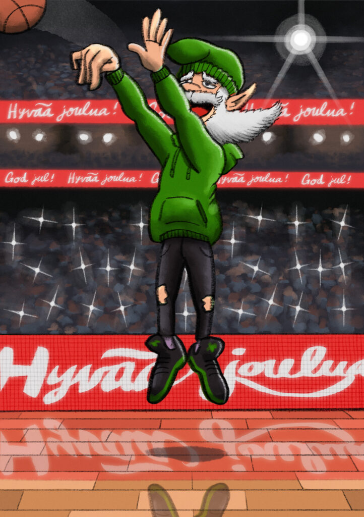 My basketball-themed illustration exhibition ”SWISH!” in Galleria Kuvitus in 2022. I wanted to bring together two worlds that are important to me, illustration and basketball.