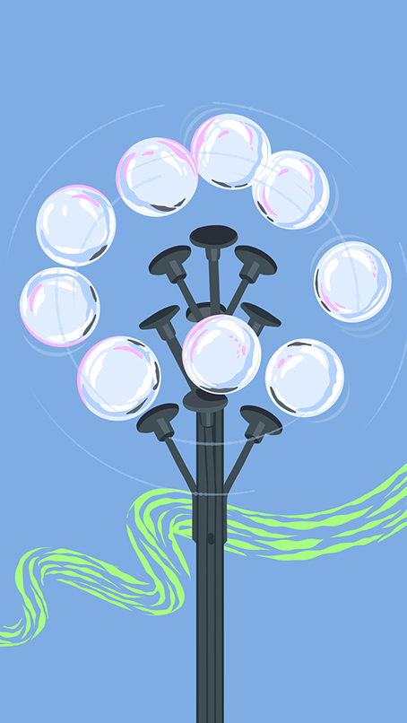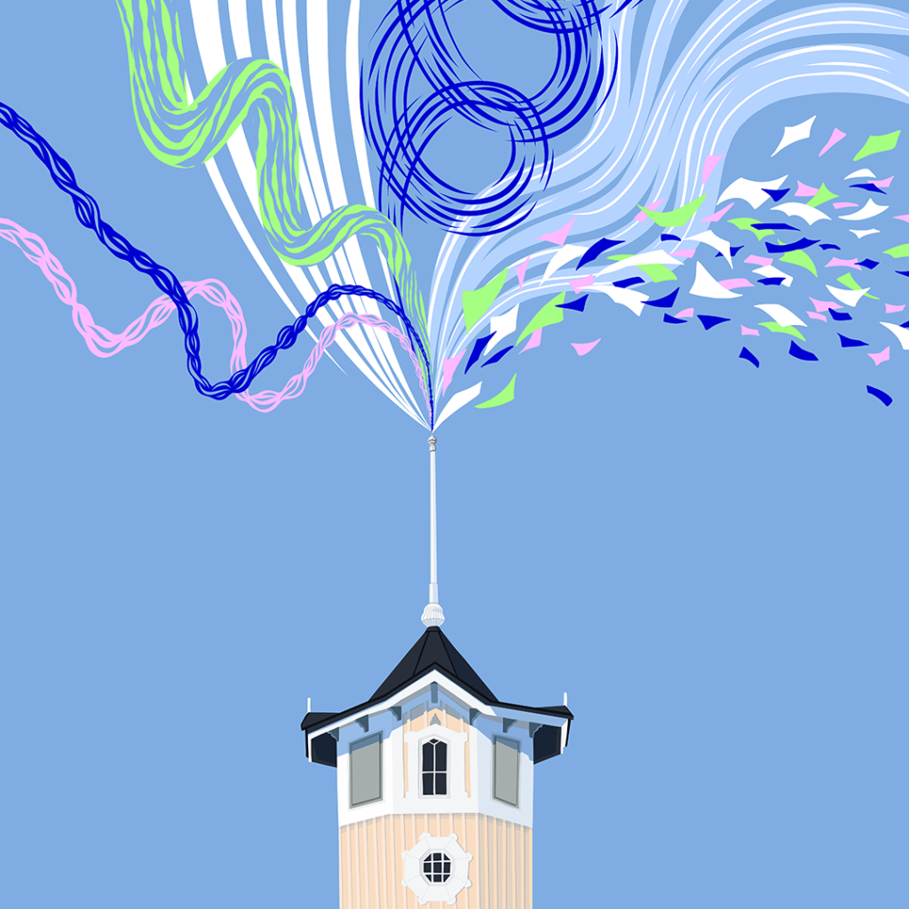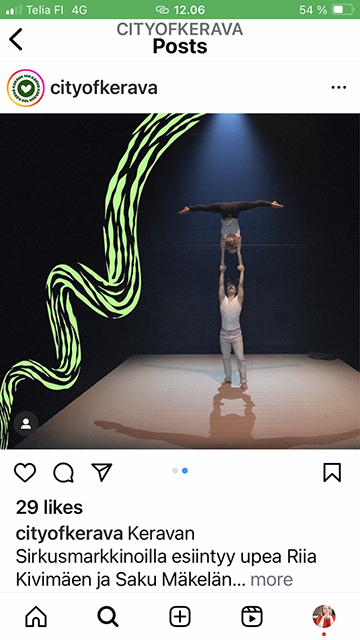 Keravalla on legendaariset Sirkusmarkkinat vuosittain. Lähtöajatuksena minulla oli ”sirkus on saapunut kaupunkiin”. Kuvituksessa Keravan asemarakennus ja katuvalot heräävät henkiin sirkuksen myötä. Halusin tuoda sirkusesitysten vauhdin ja liikeradat mukaan kuvitukseen.