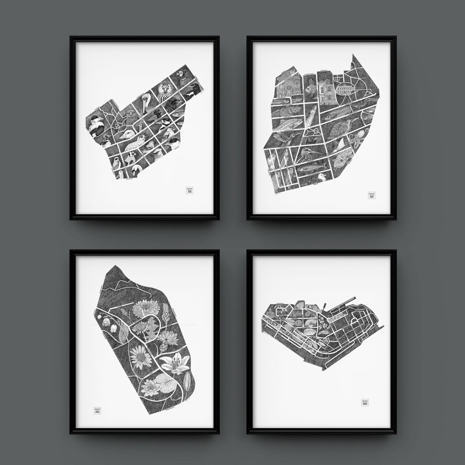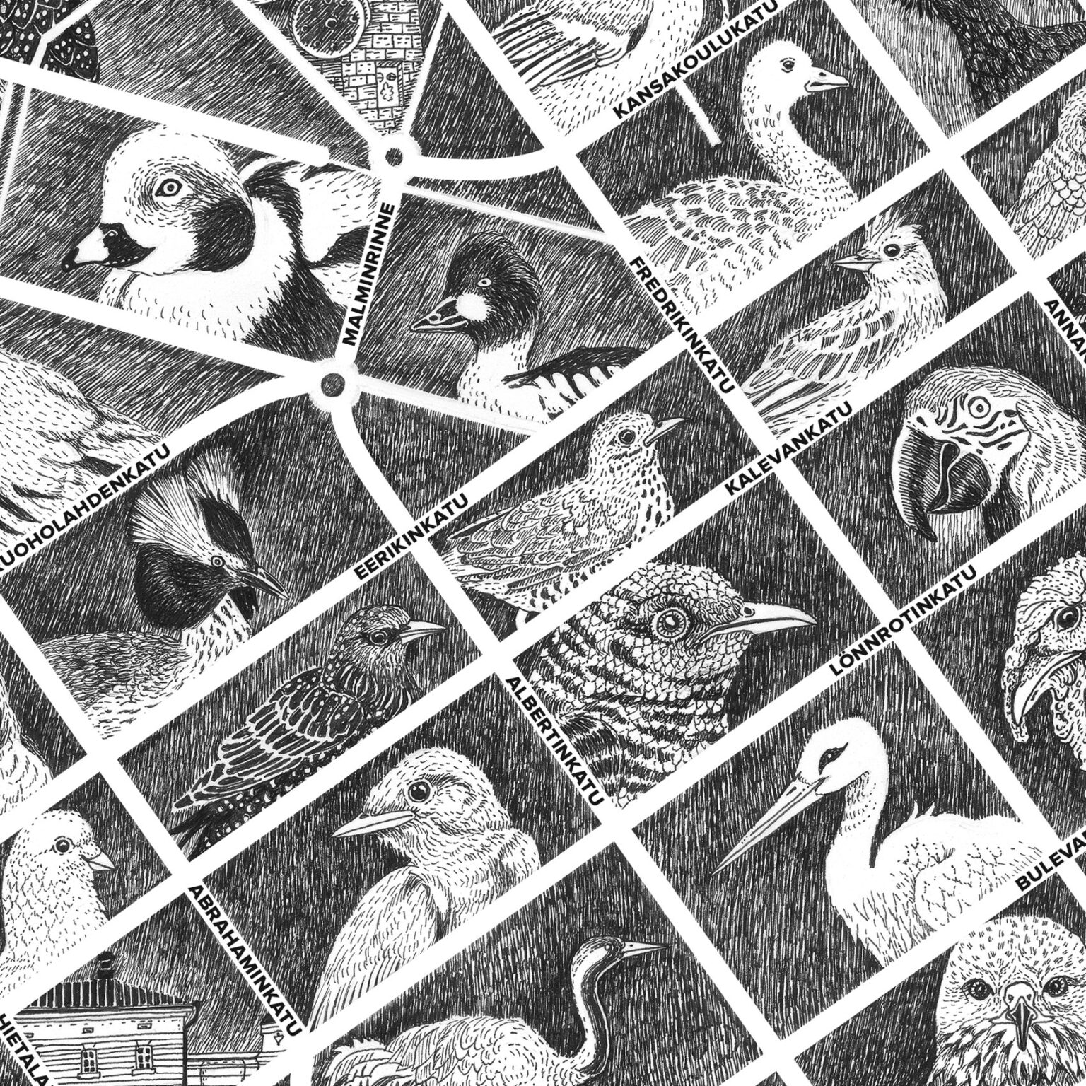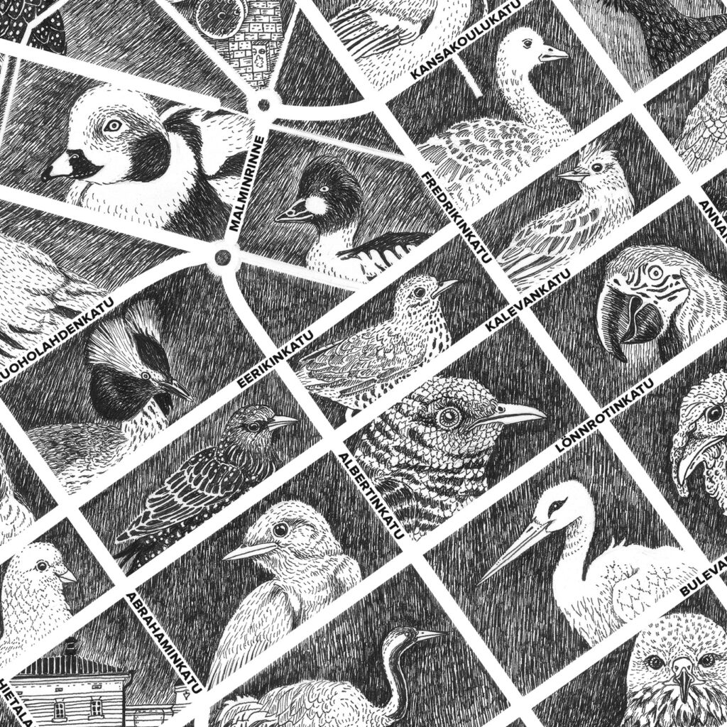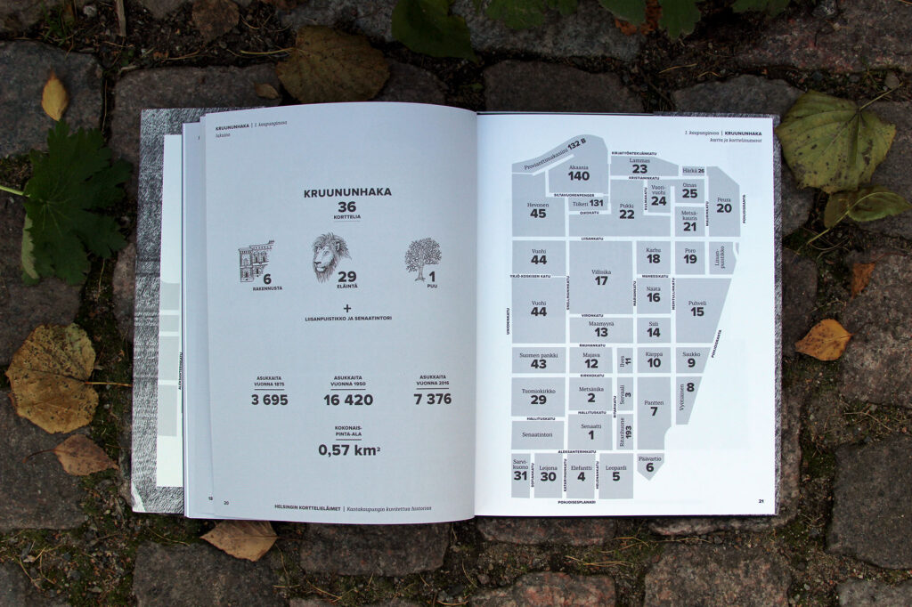 Kirjoitin, taitoin ja kuvitin tietokirjan Helsingin korttelieläimistä. Sen lisäksi loin julistesarjan, jossa on kaupunginosittan piirretty eläimet karttaan.