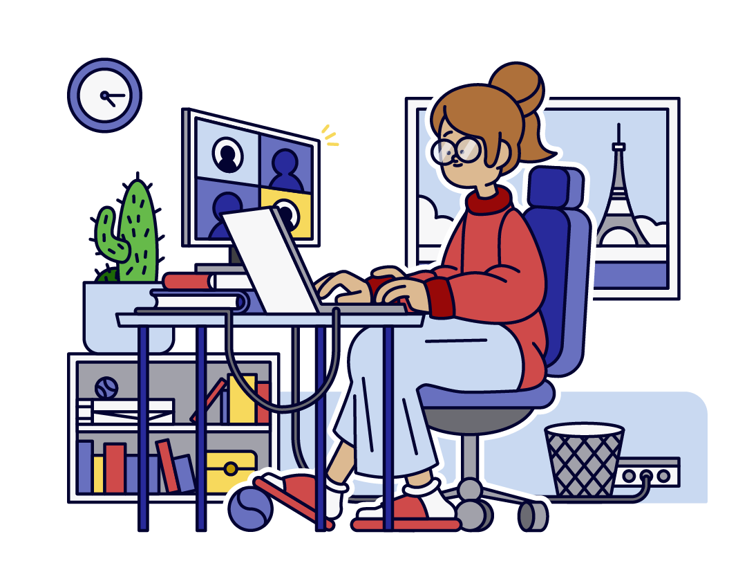 To achieve this, I depicted a lively scene of people working from home, each engaged in their own activities but also connected through the virtual meeting. The illustration portrays the dynamic nature of remote work and highlights the importance of teamwork and collaboration, even in virtual spaces.