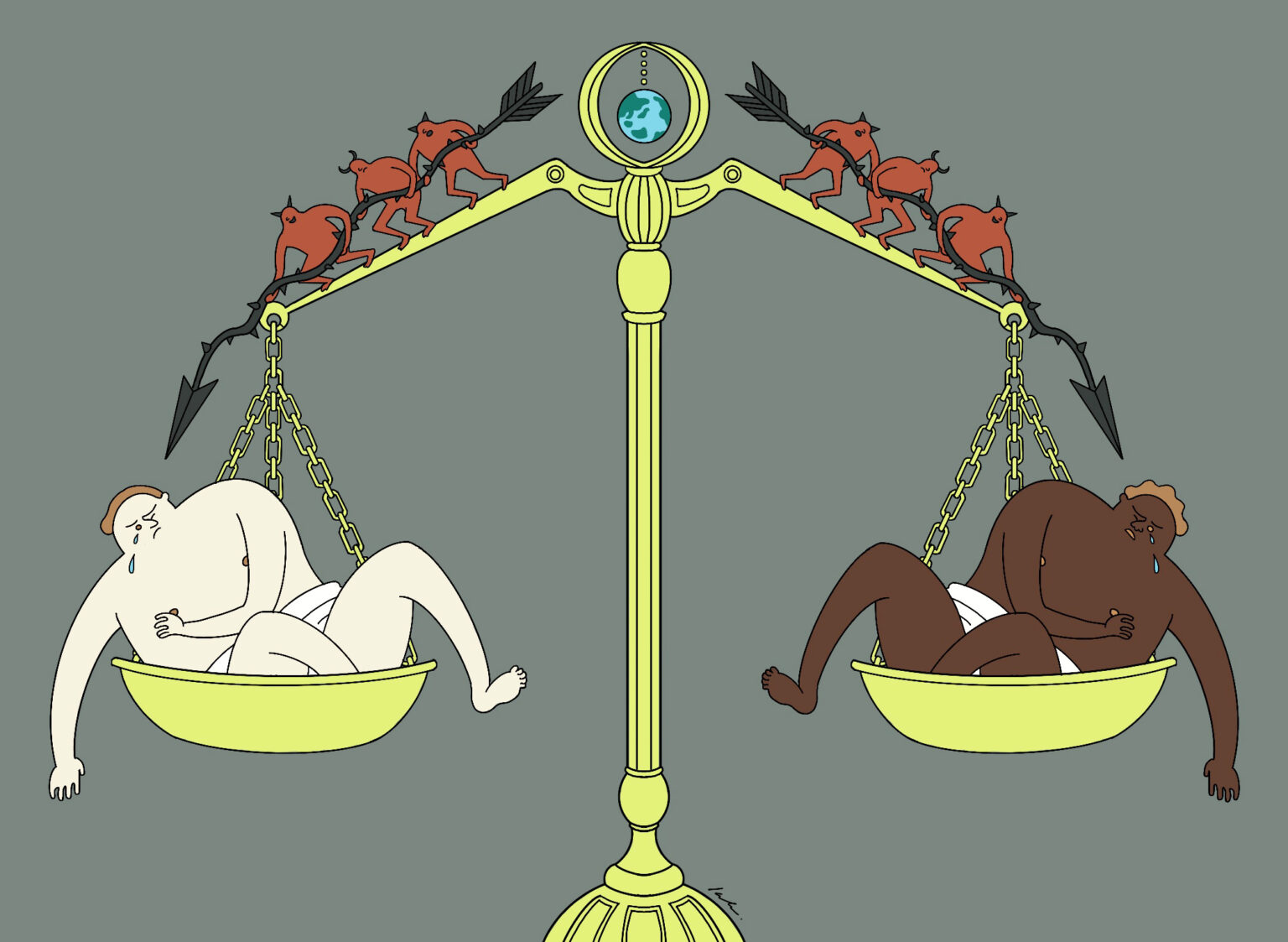 The illustration was created for an article about discrimination against whites.