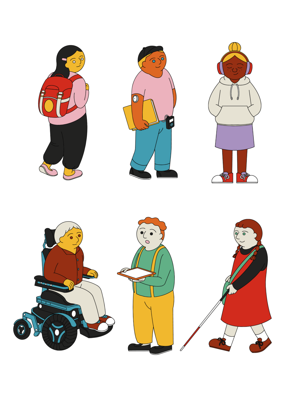 Some individual single illustrations and two illustrations about universal design.