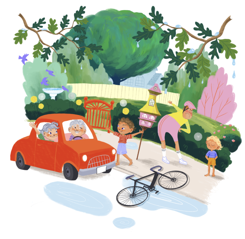 Overnight, a mailbox appears in the neighborhood. But not just any mailbox – it’s the Hotel for Lonely Letters. Along with it, a new neighbor arrives on Acorn Alley. This wizard-like figure grows sausage bushes in the yard, paints rainbows, and hides away from the rush of the world.