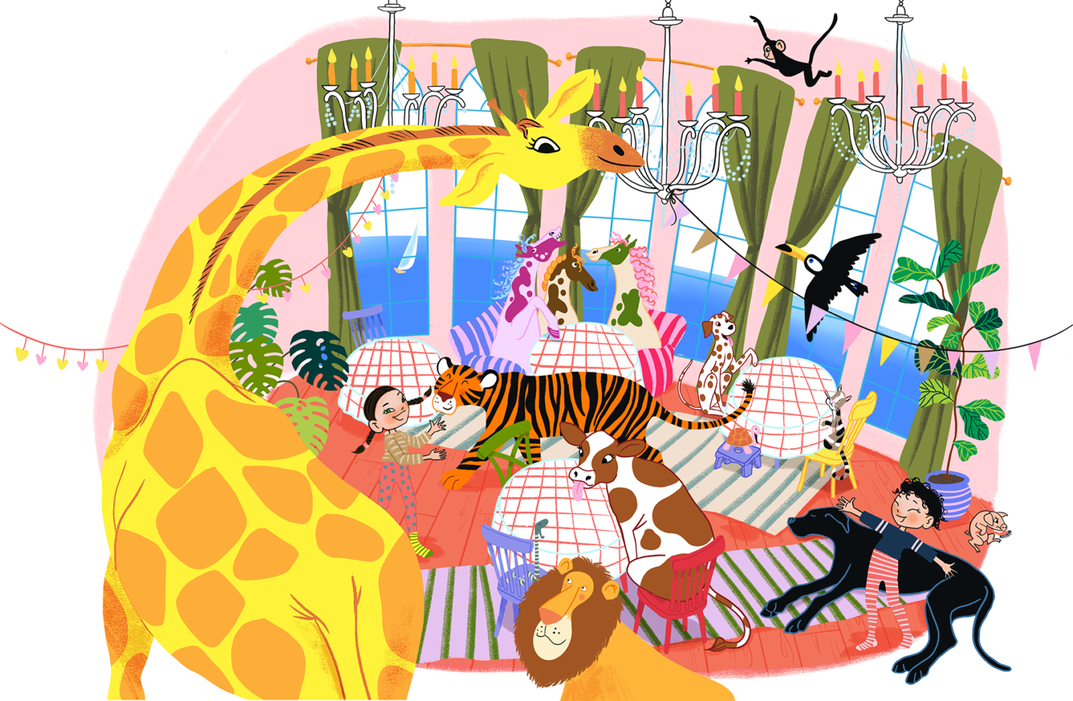 In the book, lamps turn into flamingos, stuffed animals come to life, seagulls fly out of the wallpaper, and even the dog Nakki becomes a slobbering sea monster.