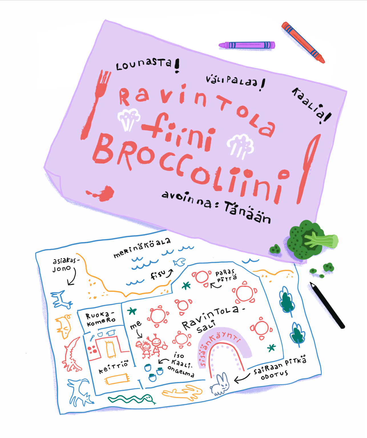 Siri and Siina can already walk home from their lessons. You’d think they’d be able to get home in no time, but what happens when imagination takes over? The journey home is winding and full of surprises, even if the kids travel as the crow flies.