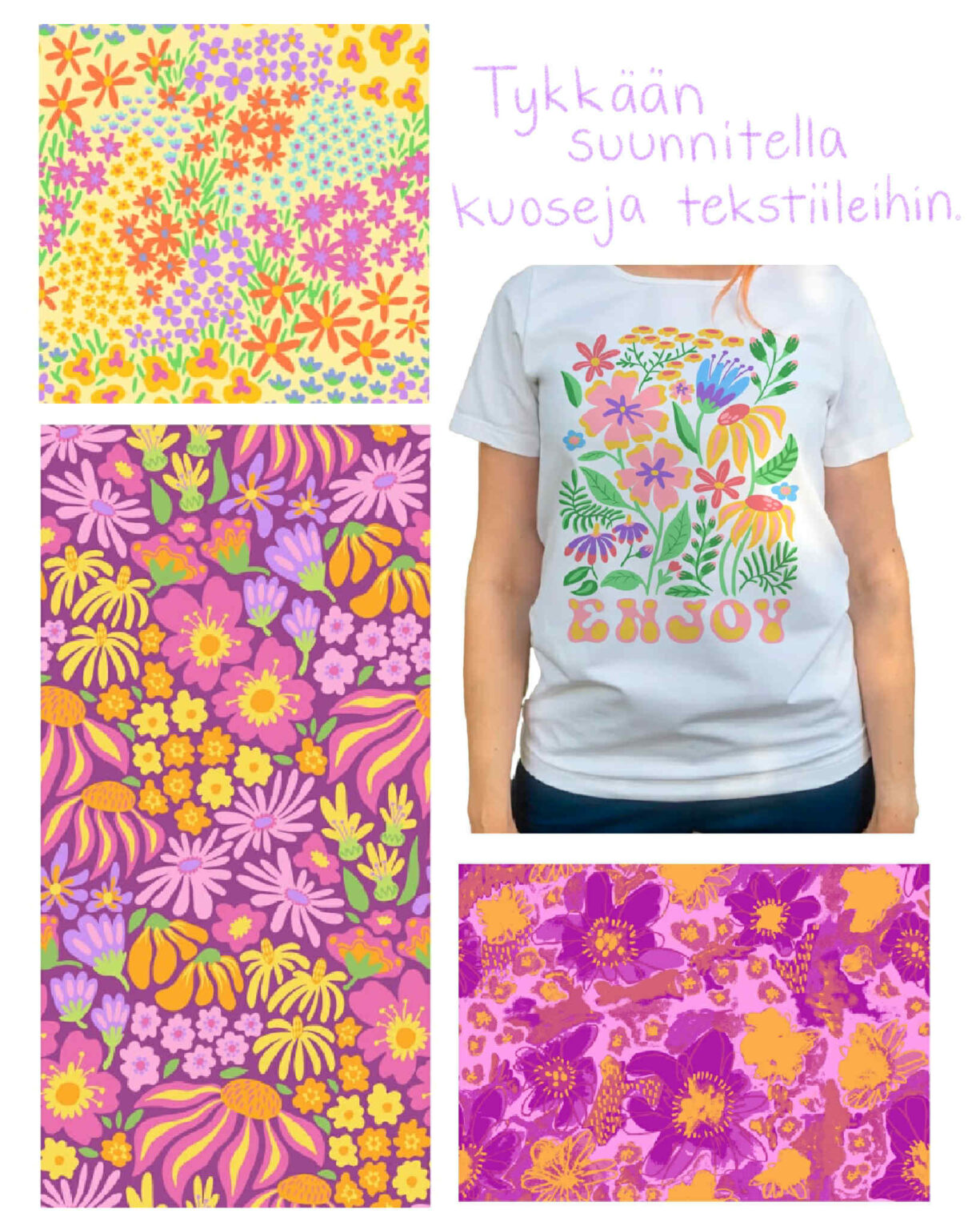 Hi, I'm Matilda Hööpakka! I'm an illustrator and visual artist. You might have already come across the character Darrakatti that I illustrate on social media. These days, I work full-time in the field of illustration and visual arts. My style is known for its vibrant colors, relaxed linework, and relatable humor. I'm happy to take on a wide range of commissions, including magazine, book, and advertising illustrations. Feel free to get in touch—no need to hesitate. :)