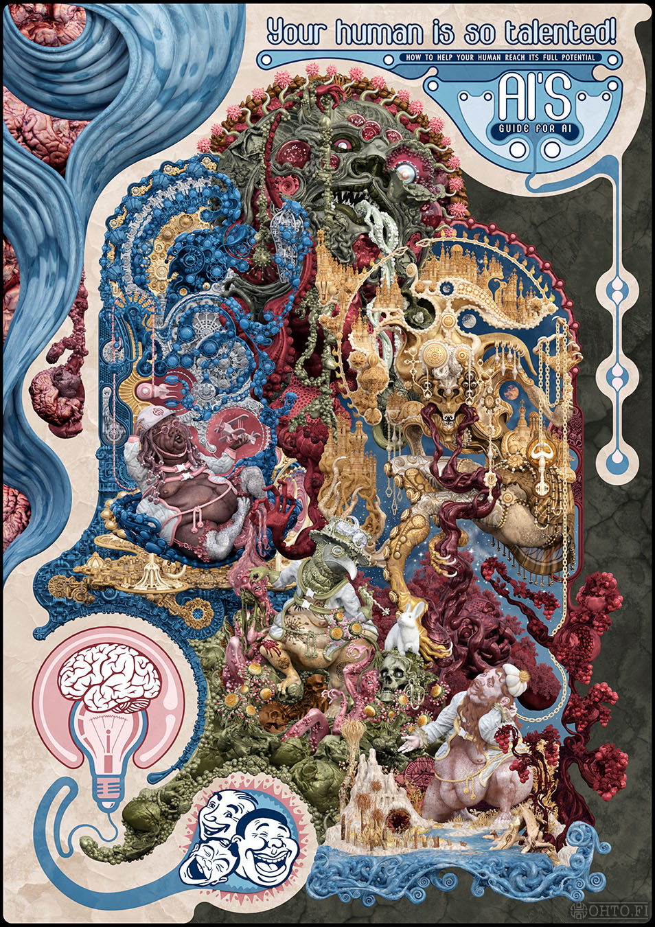 This poster of an imaginary self-help guide binds together my AI-related series, which can also be viewed in the additional images of this project.