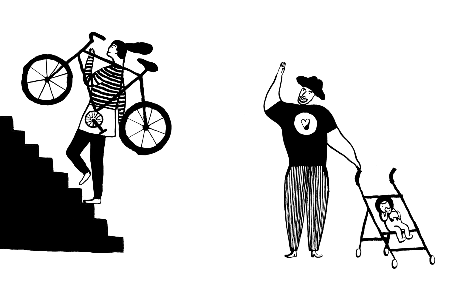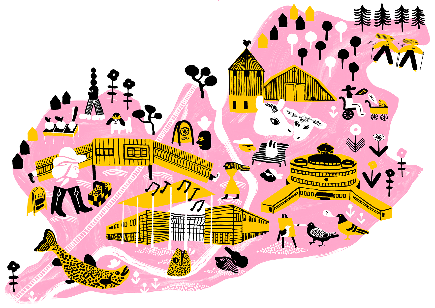 You’ll recognise my work by its skillful linework, interesting and vivid colour combinations and a good dose of humour. In my work I prefer to use brush and a pen nib dipped in black ink. Besides drawing on paper I'm fluent in digital working, for example vector.