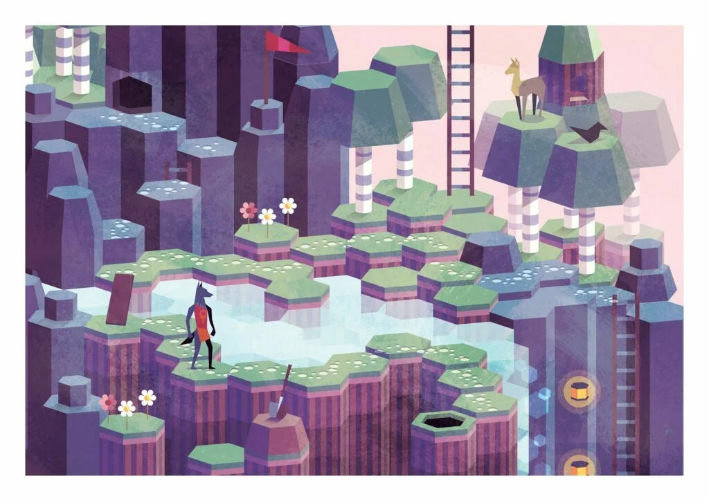 Kantanen hopes that her game illustrations can also serve as learning tools. The illustrator is also currently working on a picture-book based on the works included in the exhibition, which is inspired by OuLiPo, old Choose Your Own Adventure books, and retro videogames, among other things. In Kantanen’s opinion, games are a highly influential narrative device. The book project is supported by the Arts Promotion Centre Finland.