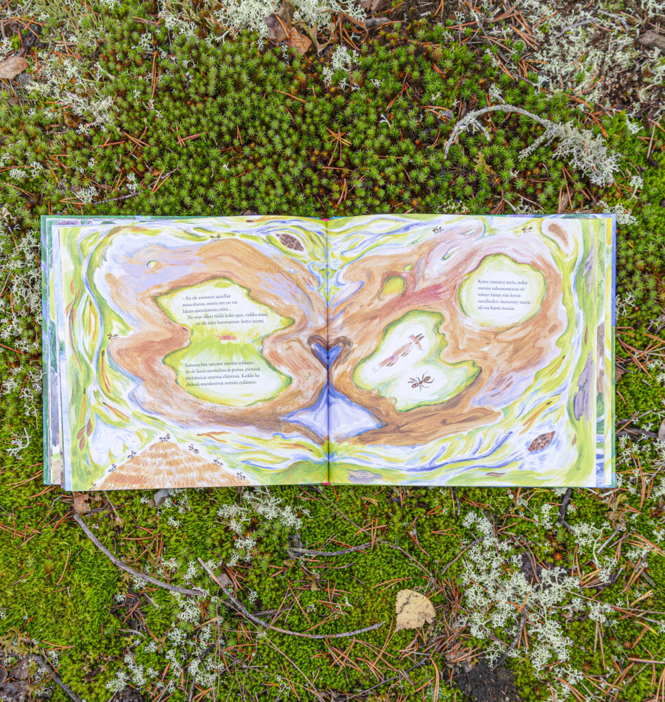 Näyttelyssä esillä olevien luonnosten ja originaalikuvitusten maalauksellinen jälki välittää luonnon estetiikkaa ja mystiikkaa. Käsinkirjoitetut muistiinpanot avaavat hetkiä tarinan takaa. Esillä on myös samasta aihepiiristä ammentavia uusia maalauksia. Näyttely tuo esiin Johanna Lumpeen tavan katsoa luontoa, pintoja ja tekstuureja tarkkaillen. Se muistuttaa, että metsä ei ole vain yksi suuri kokonaisuus, vaan se koostuu lukemattomista pienistä yksityiskohdista. Näyttely houkuttelee pysähtymään puiden keskelle, löytämään metsän hengen ja tunnistamaan itsensä sen rytmistä: “Kun olen metsässä, metsä on minussa. Ja kietoudun sen ikiaikaiseen rihmastoon.”