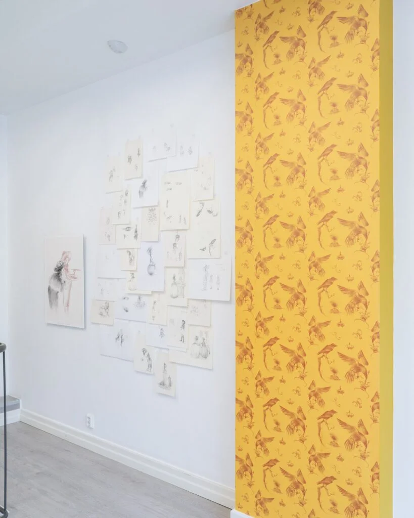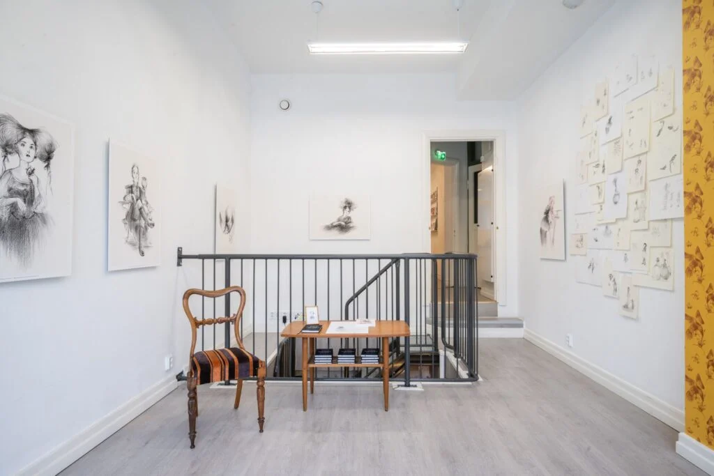 The leading lady of Galleria Kuvitus’ autumn exhibition is the charmingly carefree Marquise. The character, created by beauty-loving illustrator Kati Vuorento, knows how to enjoy life, even though she has money troubles. The exhibition Marquise de Sans Souci – The Carefree Marquise presents delicate and vivid pencil originals and their enlargements. One of the designs has been transformed into a charming wallpaper fit for the walls of any mansion. The magic of the past continues in the A Line of Love paper products. These include postcards made from selected illustrations and the weekly planner ‘‘A Year of Losing a Fortune Avec Classe’’, featuring dubious, yet exhilarating aphorisms.