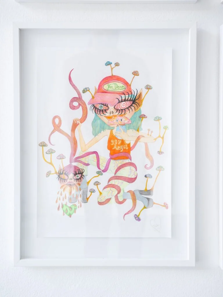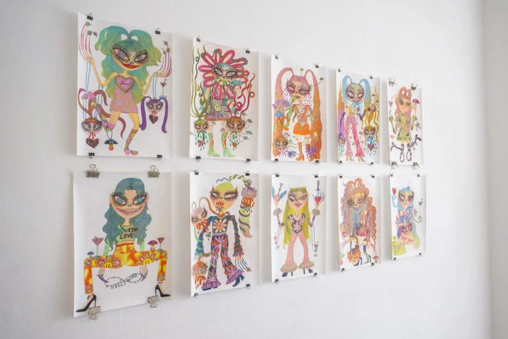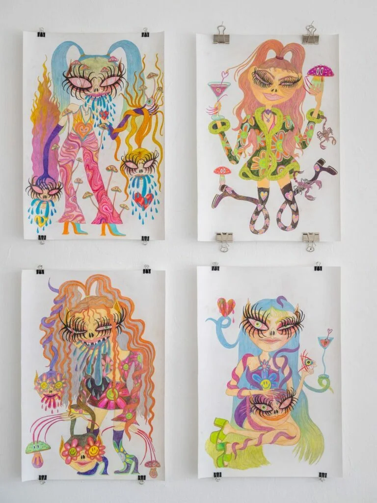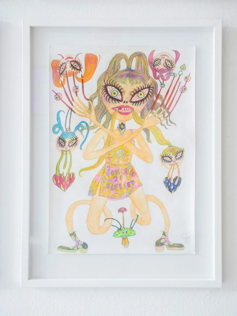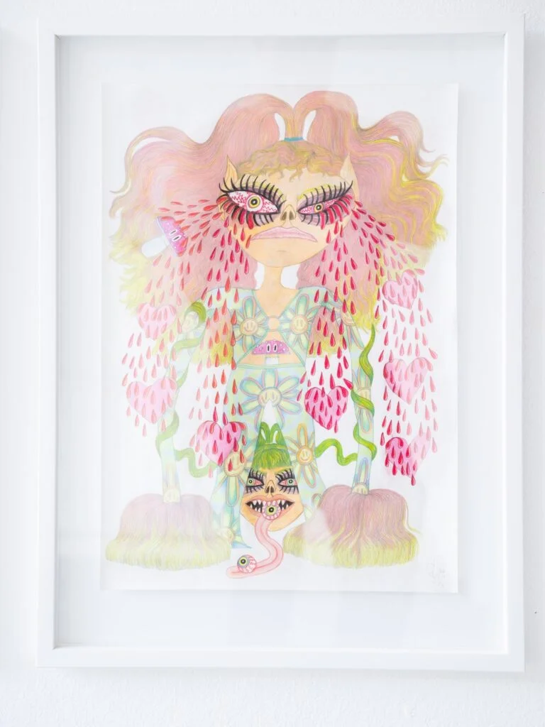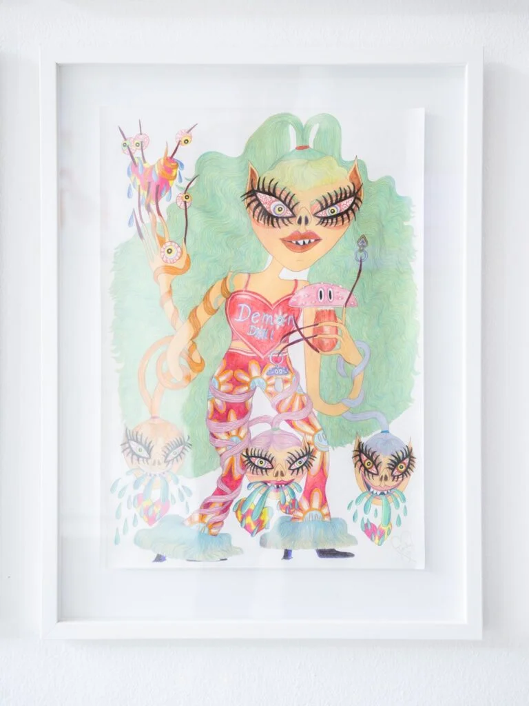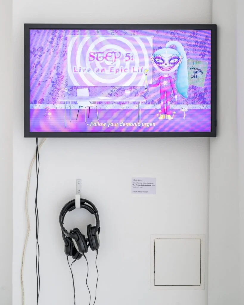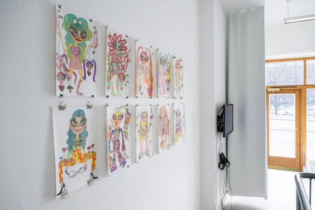 Demon Dolls is a series of monstrous influencer characters, drawn on paper with colored pencils. The illustrations draw from the imagery of social media and reflect on its ideals, emotions and phenomena. Through her illustrations, Mannila explores influencer culture, the need for attention and approval, appearance-related pressures created by social media, and self-centeredness. The exhibition also includes a fictional audio work, a Demon Dolls zine, and a video made in collaboration with Aliina Kauranne. With her exhibition, Mannila wants to contribute to the discussion about the problems related to influencer culture and comment on the behavioral patterns we exhibit on social media.