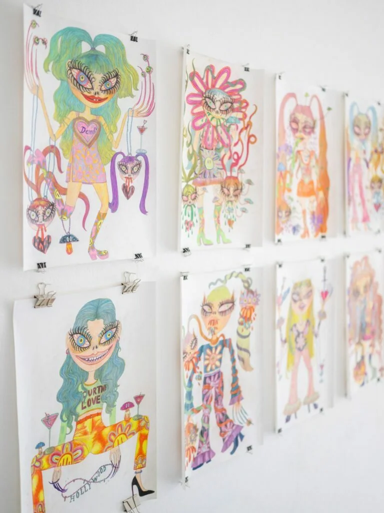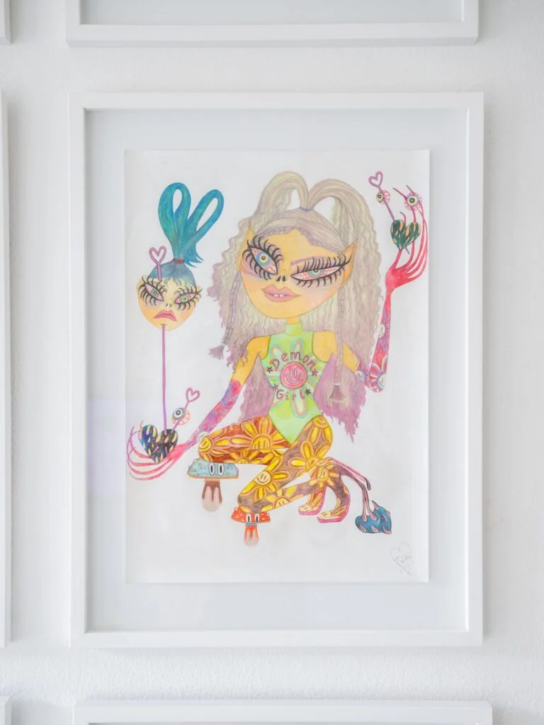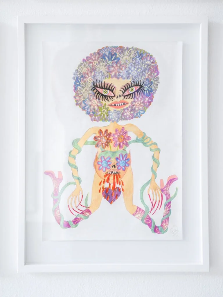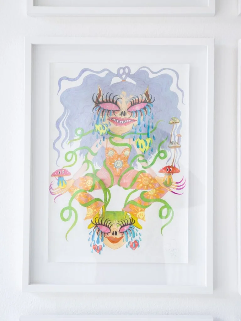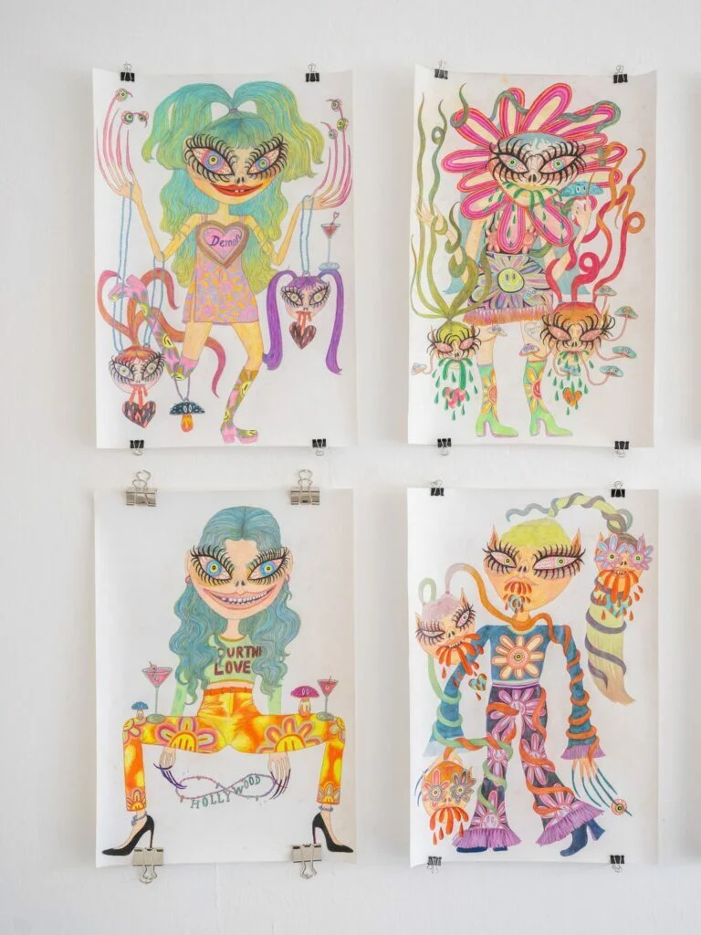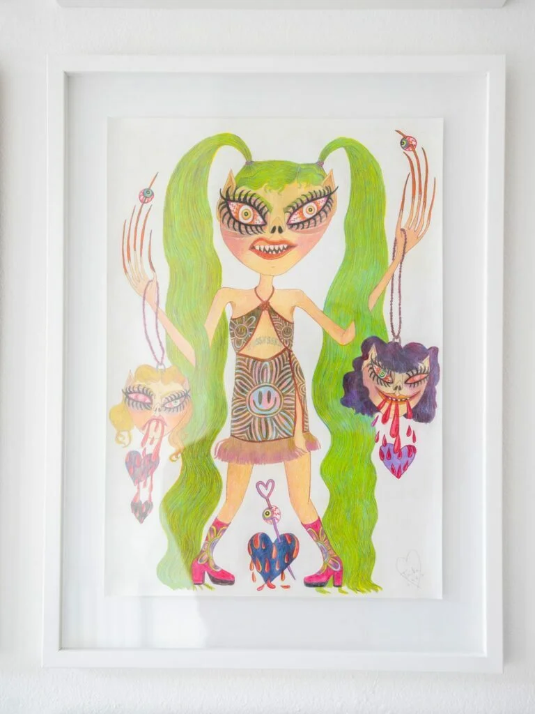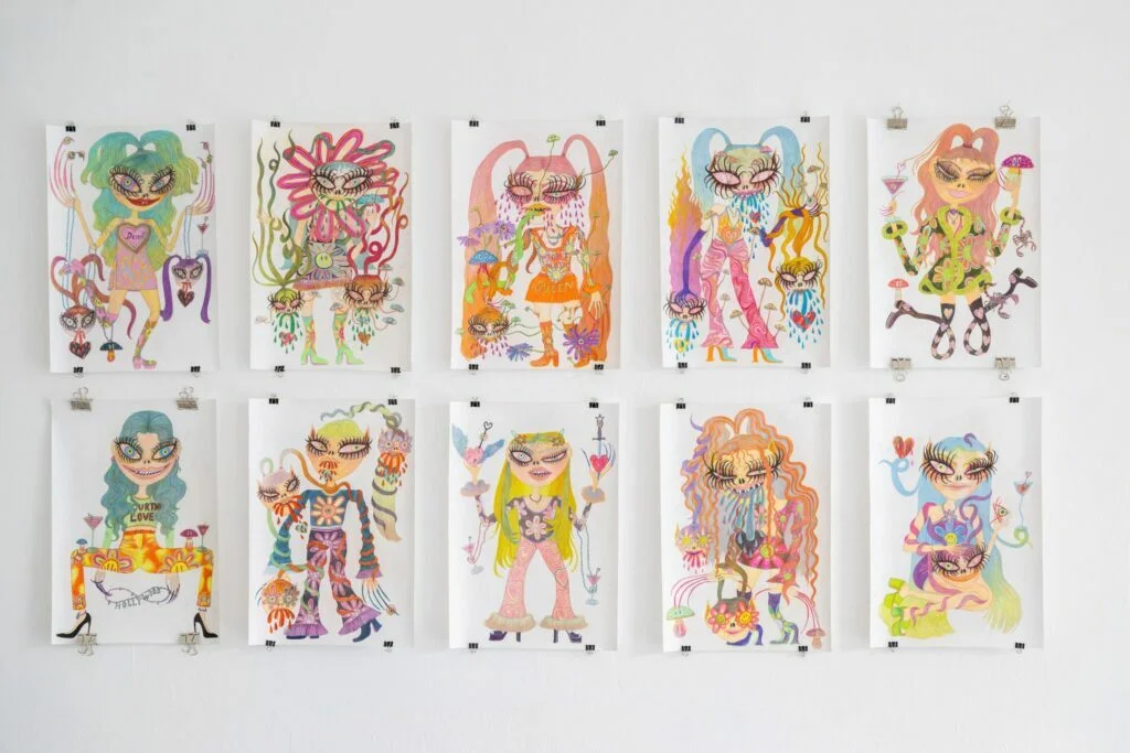Demon Dolls is a series of monstrous influencer characters, drawn on paper with colored pencils. The illustrations draw from the imagery of social media and reflect on its ideals, emotions and phenomena. Through her illustrations, Mannila explores influencer culture, the need for attention and approval, appearance-related pressures created by social media, and self-centeredness. The exhibition also includes a fictional audio work, a Demon Dolls zine, and a video made in collaboration with Aliina Kauranne. With her exhibition, Mannila wants to contribute to the discussion about the problems related to influencer culture and comment on the behavioral patterns we exhibit on social media.