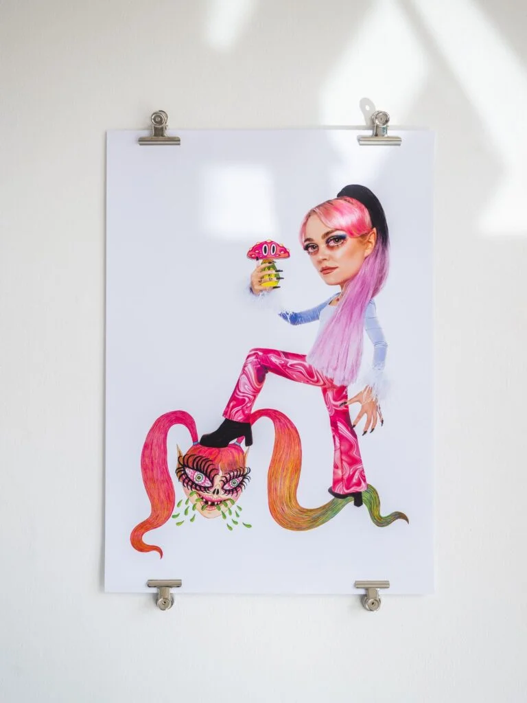 Taika Mannila (b. 1988) is a Helsinki-based freelance illustrator and DJ, known as an advocate for femininity and girlhood. In her work, she explores themes such as social media trends and power structures.
