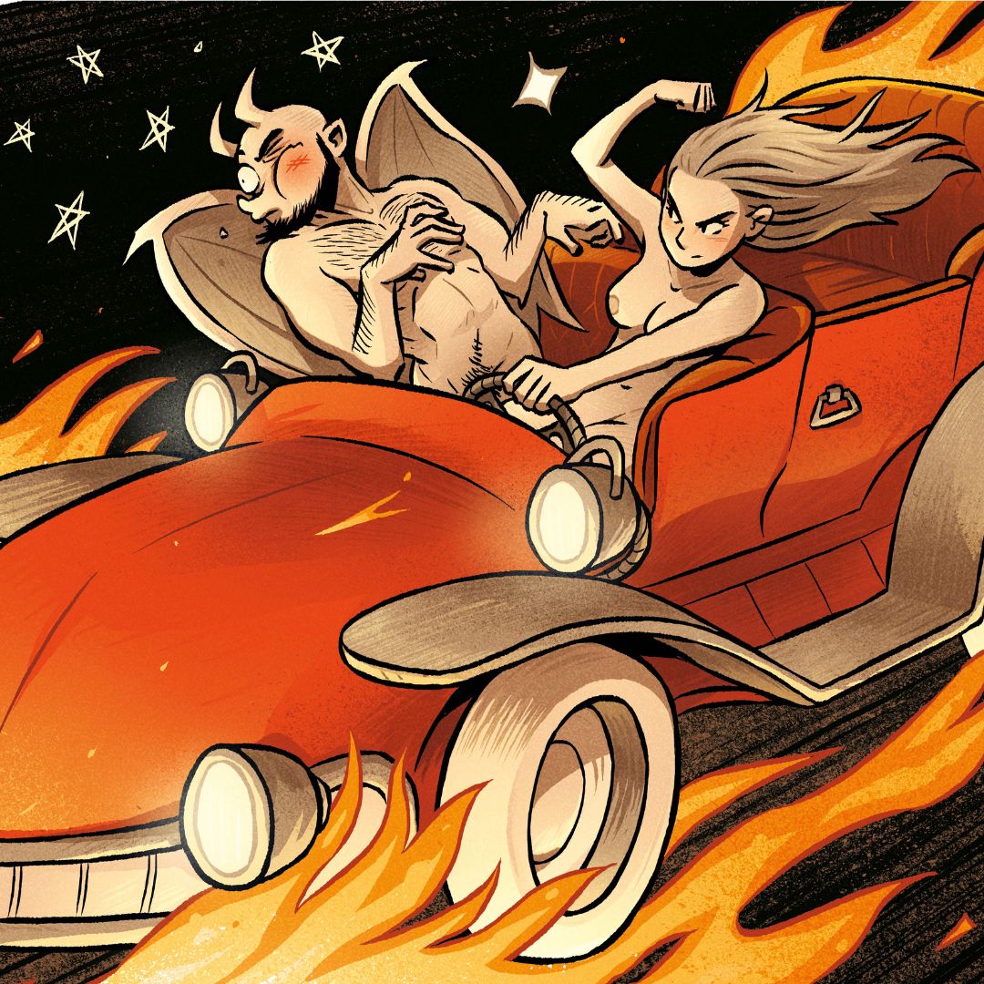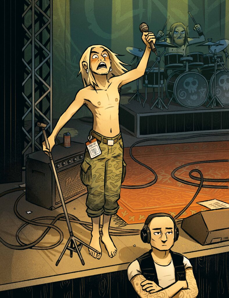 JP Ahonen (s. 1981) tunnetaan sarjakuvataiteilijana ja kuvittajana, jonka teoksissa tuntuu voimakas rock-kulttuurin puraisu ja parodisuus rakasta aihetta kohtaan. Kahdeksalle kielelle käännetty sarjakuvakirja Perkeros (Wsoy 2013) KP Alaren kanssa kuvaa kokeellisen metallibändin käänteitä, mikä on koomista ilman huumori-etuliitettäkin. Belzebubs-nettisarjakuva siirtää black metallin kliseet ydinperheen kontekstiin hauskalla tavalla.