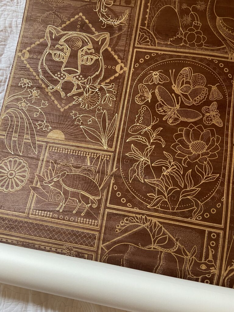 Virallinen bränditarina kertoo kultaisesta tiikeristä, joka ei halua olla erossa ystävistään. Siksi sen ympärille on kerätty eläinhahmoja, jotka esiintyvät Moooin muissa tapettimalleissa.
