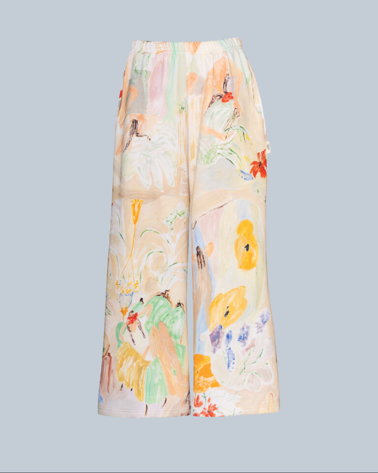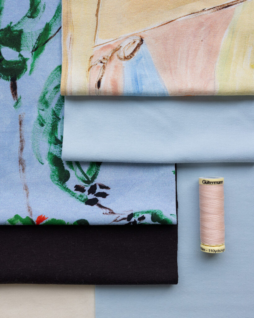 ”Luontevaa oli etsiä suunnittelija, joka tekee jotain muuta kuin minä. Näin Hyrrin teoksia Taidekeskus Salmelassa ja ajattelin heti, että vitsit, nämä voisivat olla aika kivoja myös vaatteissa. Onneksi hän innostui yhteistyöstä.”