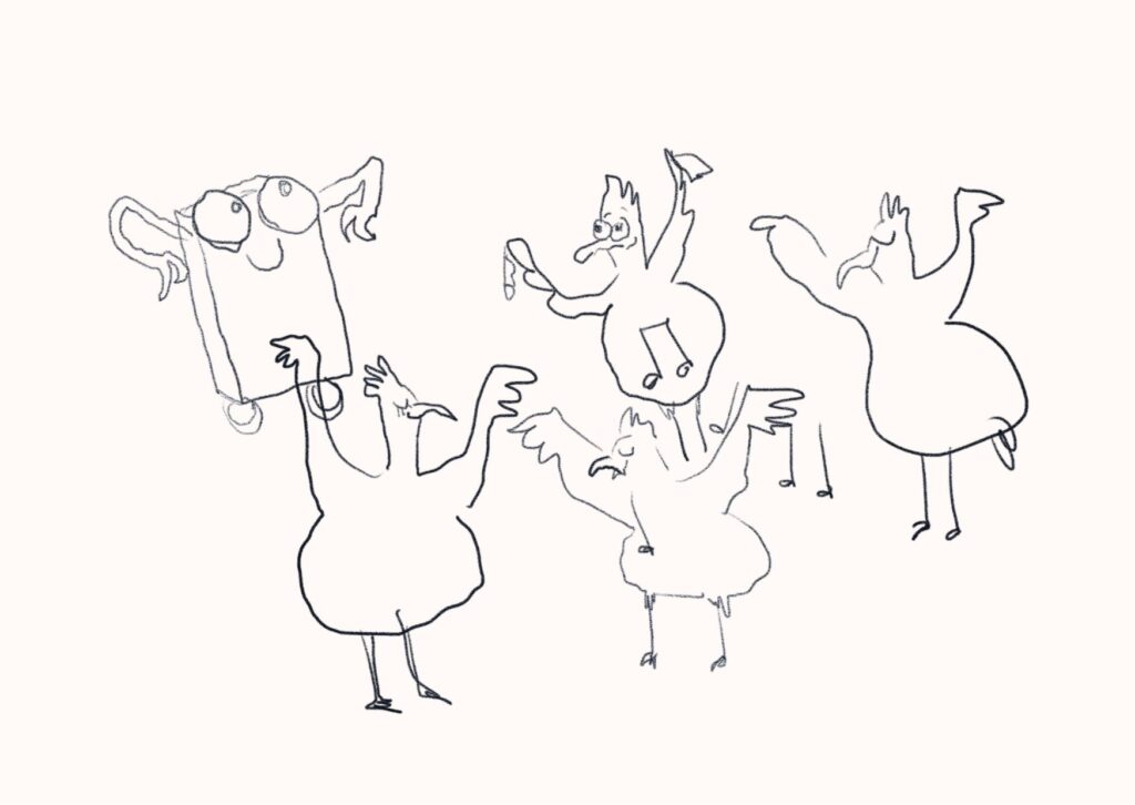Luonnos Hopi Hopi -kirjaan: ”Alussa idea saattaa olla hyvin luonnosmainen ja hämärä. Prosessin aikana kaikki voi muuttua paljonkin. Se tunne, kun kaikki palat loksahtaa paikoilleen, on sen arvoinen!”