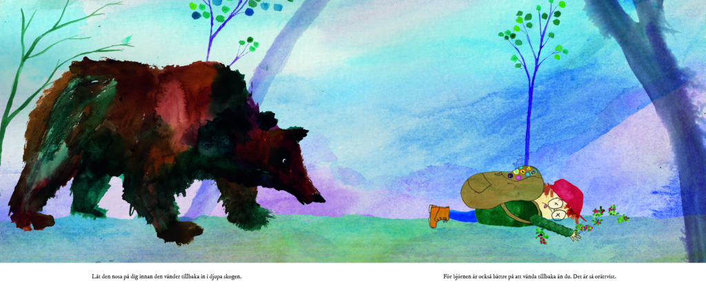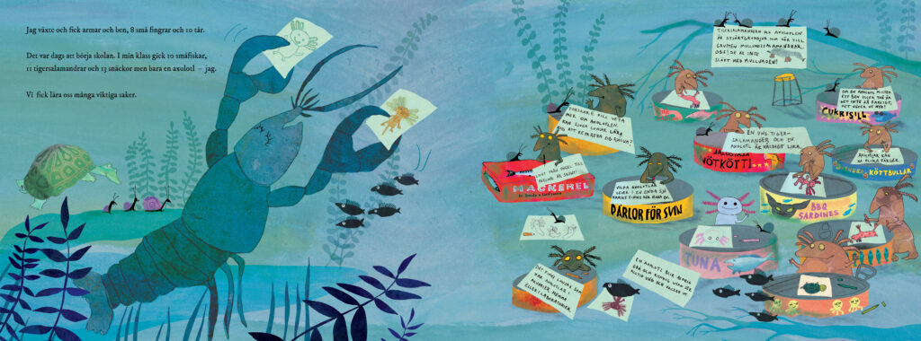 Viime vuodesta lähtien olen ollut mukana Ruotsin kouluhallinnon aloitteessa, jossa matkustan ympäri maata tapaamassa opettajia, puhumassa työstäni ja siitä, mitä ajattelen, kun luon kuvakirjaa. Tällä tavalla yritän inspiroida opettajia laajentamaan näköalojaan ja innostaa heitä lukemaan niin paljon kuin mahdollista. Toivon, että saan heidät valitsemaan monenlaisia ​​kuvakirjoja – esimerkiksi sellaisia, joissa on epätavallinen kuvamaailma tai sellaisia, jotka saattavat ensi silmäyksellä tuntua oudoilta tai synkiltä.