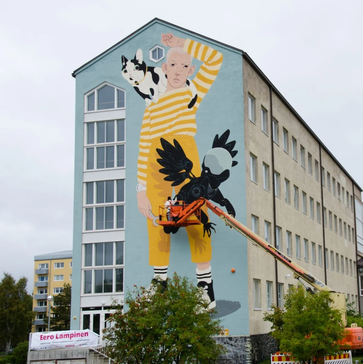 Eero Lampinen maalasi muraalin Kemiin osana UPEArt-festivaalia.