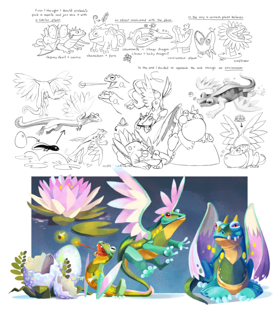 Hahmosuunnittelussa kuvitukset, valokuvat, animaatio ja havainnot elävästä elämästä toimivat inspiraation ja opiskelun lähteinä.