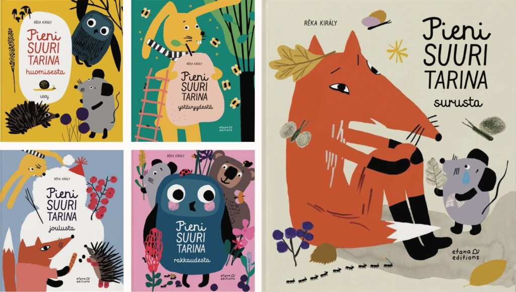 Etana Editions -kustantamon toisen perustajan Réka Királyn kuvakirjasarjaa Pieni suuri tarina on julkaistu jo viiden teoksen verran. Sen ensimmäisen osan, Pieni suuri tarina huomisesta, julkaisi WSOY vuonna 2013, ja myöhemmät osat on kustantanut Etana. Kirjasarjassa seurataan inhimillistettyjen metsän eläinten, Ketun, Jäniksen, Siilin, Hiiren, Pöllön ja Karhun oivalluksia elämästä.