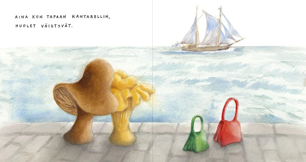 Saatuani Julia Vuoren Sieni tunteiden aallokossa -kirjan, luin sen joka päivä, ja joka lukukerralla itkin vähän. Vaikka kirja lienee ensisijaisesti tarkoitettu pienemmille lukijoille, koskettaa se myös aikuista. Varsin tavanomaisen ruskean metsäsienen näköinen, erilaisten emootioiden kanssa kamppaileva sieni on yllättävä mutta ilahduttava samaistumisen kohde.