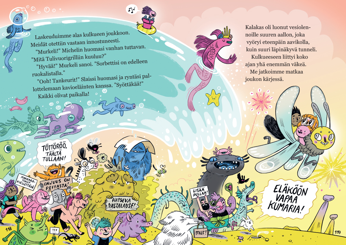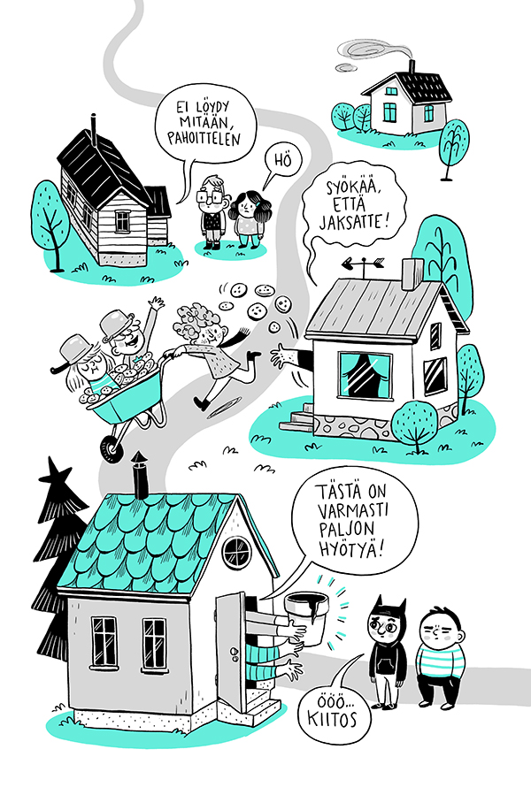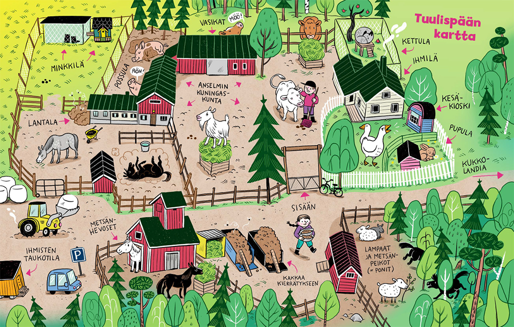 Onnekkaiden eläinten talo - Tarinoita Tuulispäästä -kirjan kuvitus / WSOY / 2023202