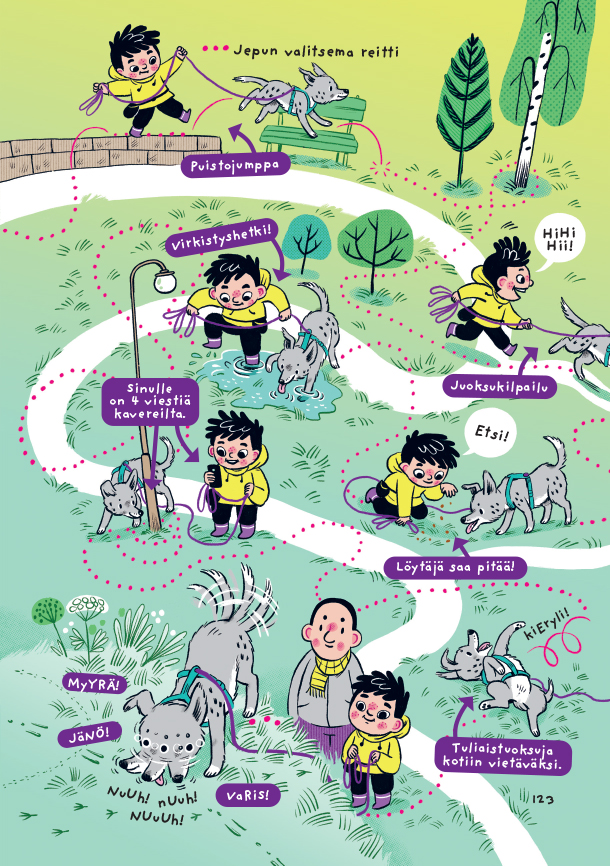 Parhaat ystävät -koiratietokirjan kuvitus / Sammakko / 2023