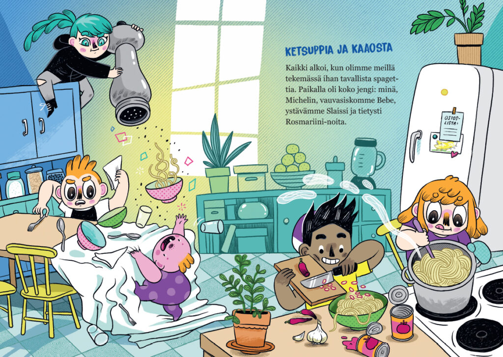 Vahvuuteni on eläväisessä sarjakuvallisessa ilmaisussa. Vahvimmillani olen, kun saan toimia työparina kirjailijan kanssa. Yhteistyössä on voimaa! Työskentelen pääsääntöisesti digitaalisesti.
