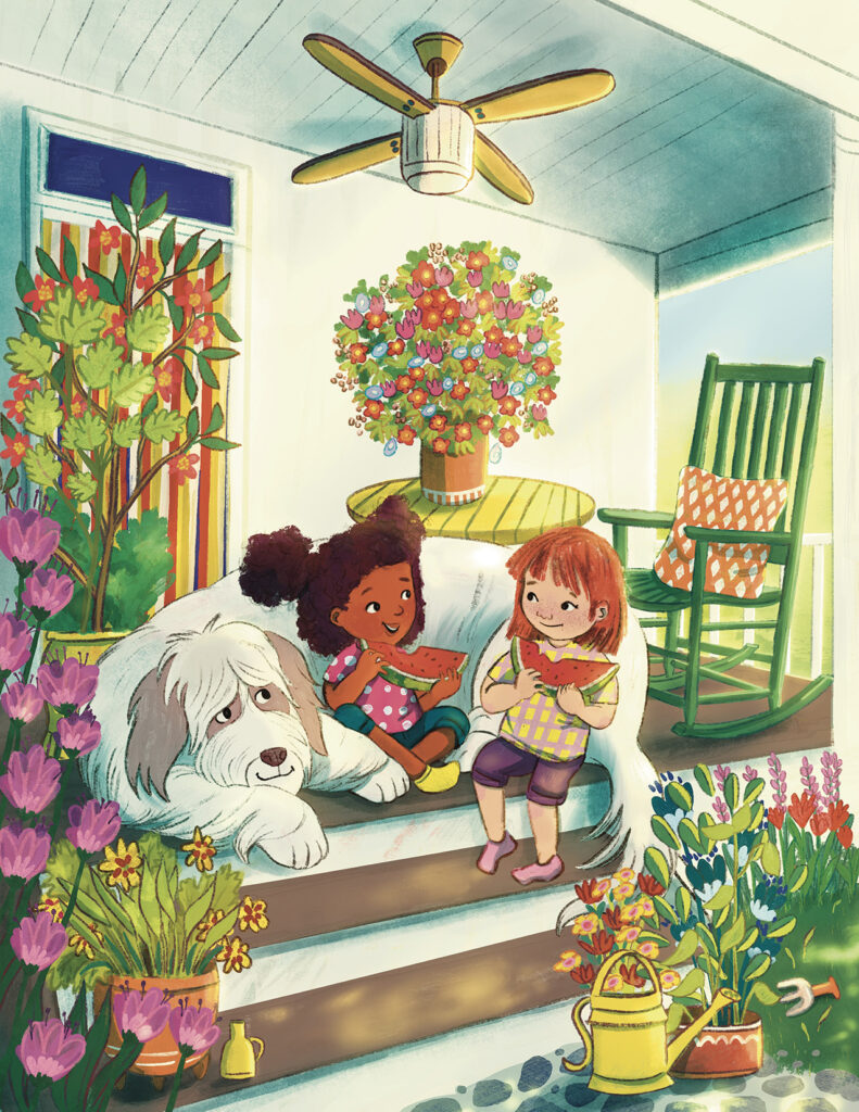 Lastenkirja kuvituksien parissa piirrän mielelläni monimuotoisia, leikkisiä hahmoja perhe-elämän erityisissä ja arkipäiväisissä hetkissä. Viehätyn suuresti iloisista ja humoristisista kertomuksista, mutta olen myös kiinnostunut ihmisiin ja ympäristöön vaikuttavista ajankohtaisista aiheista. Ensisijainen tekniikkani on digitaalinen kuvitus analogisella tunnelmalla.