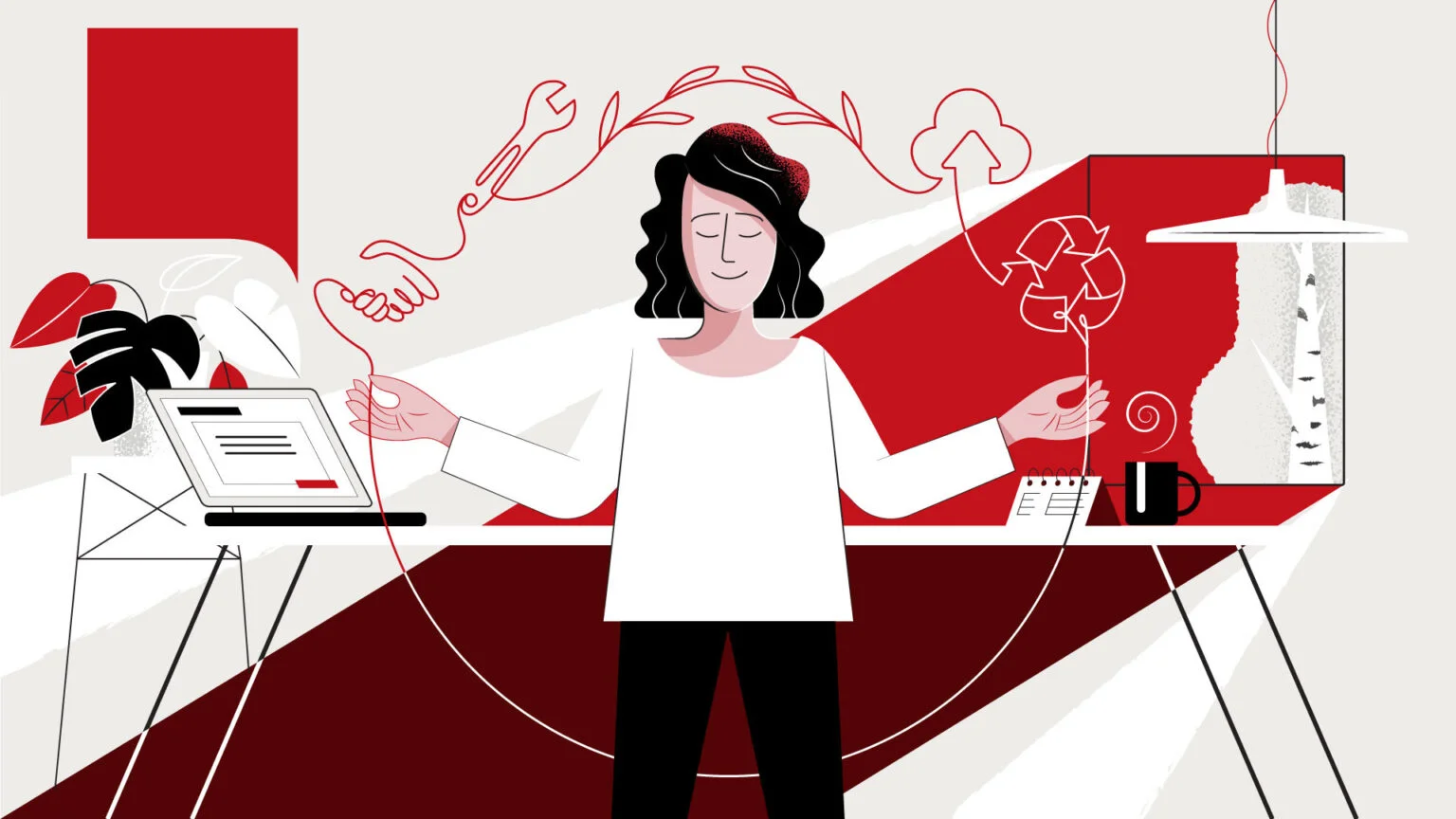 Kuvituksia Design Forumin julkaisemaan Circular Design -oppaaseen kestävän muotoilun periaatteista 🌿📘✨