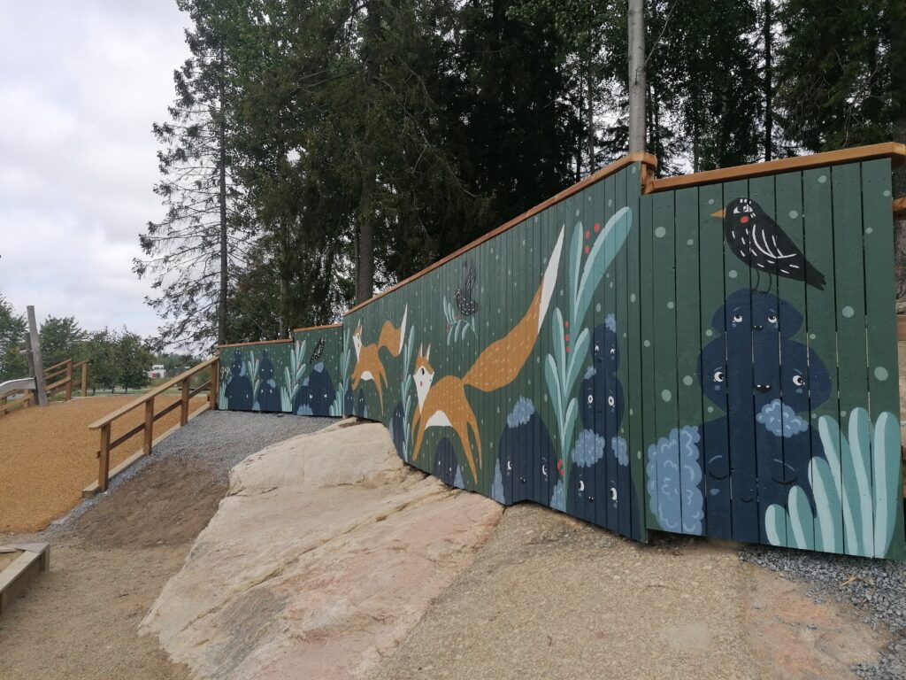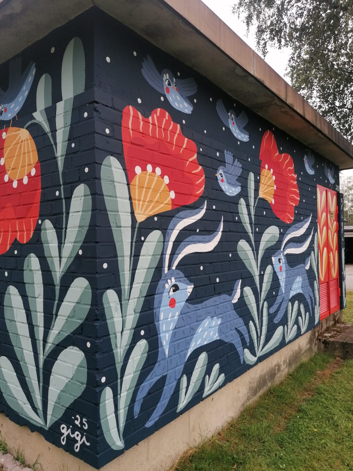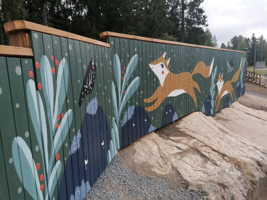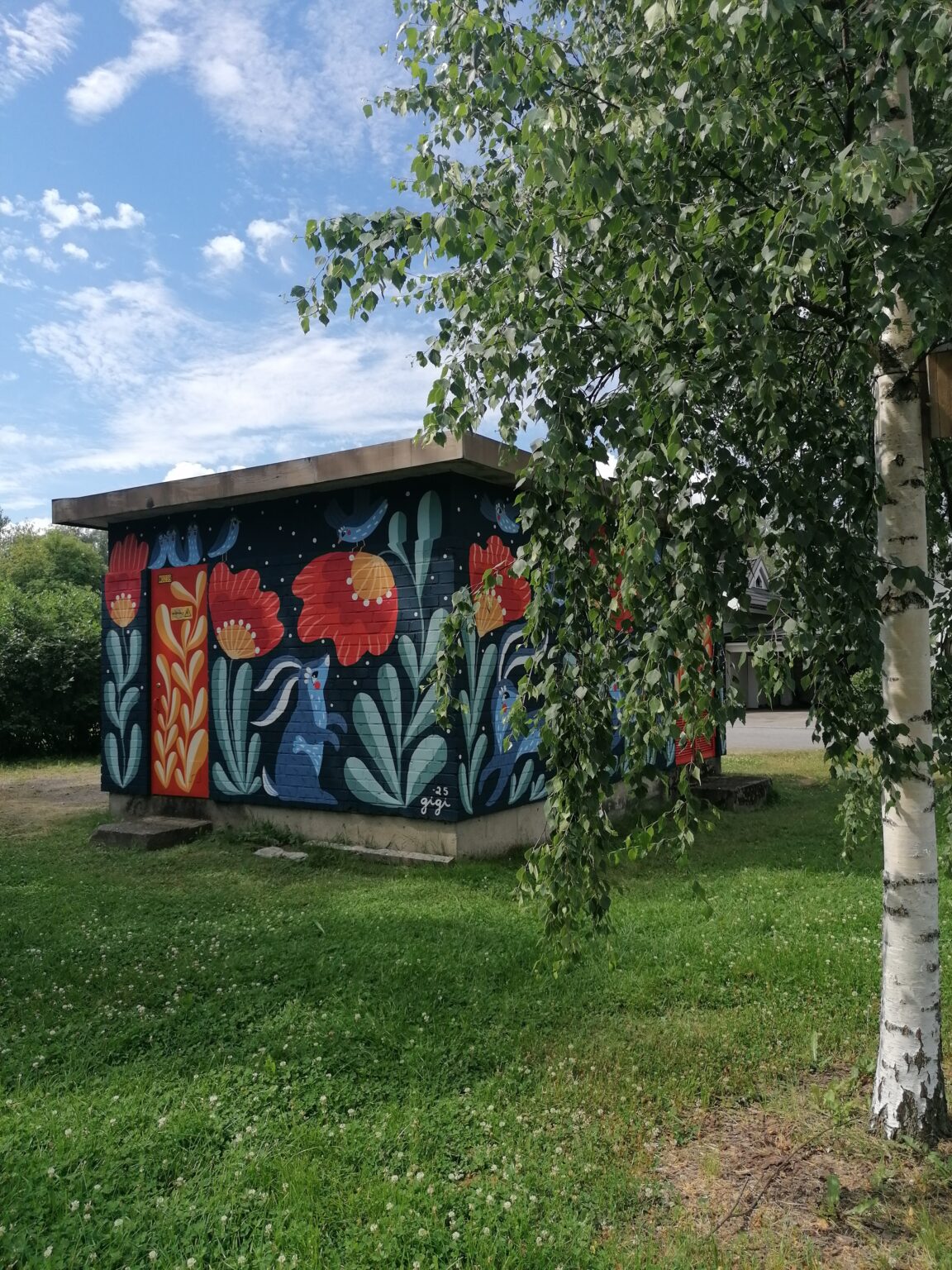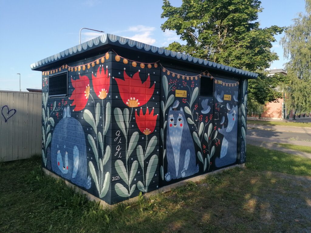 Kesällä 2025 maalasin Tampereella viisi sähkönjakokaappia, 2 muuntamoa ja Vuoreksen uuden leikkipuiston ison aidan.
