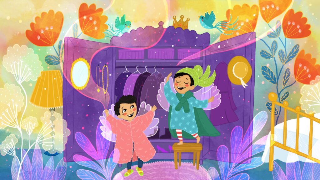 Tarina meidän perheestä-podcast kuvitukset/Yle Areena/Pikku Kakkonen