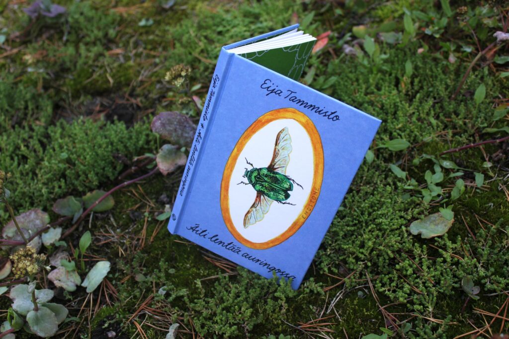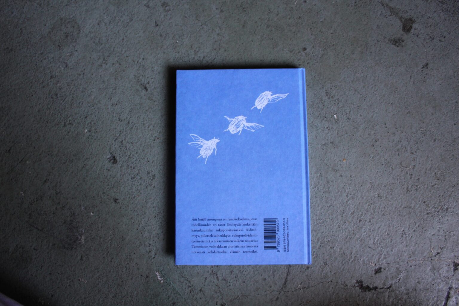 Kansi- ja etulehtikuvitukset Eija Tammiston runokirjaan Äiti lentää auringossa (Enostone, 2024)