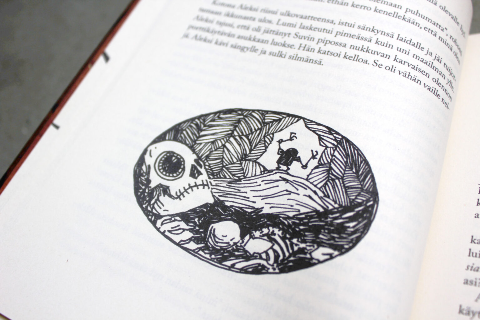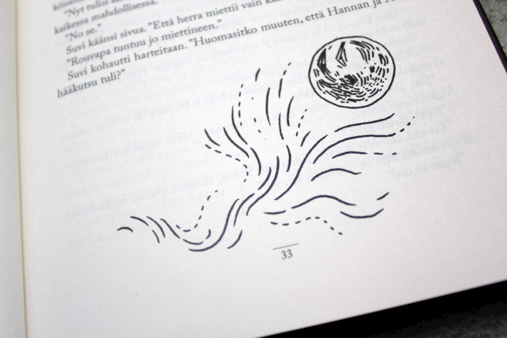 Kuvituksia Heli Haltian nuortenkirjaan Suwenkorento (Enostone, 2025)