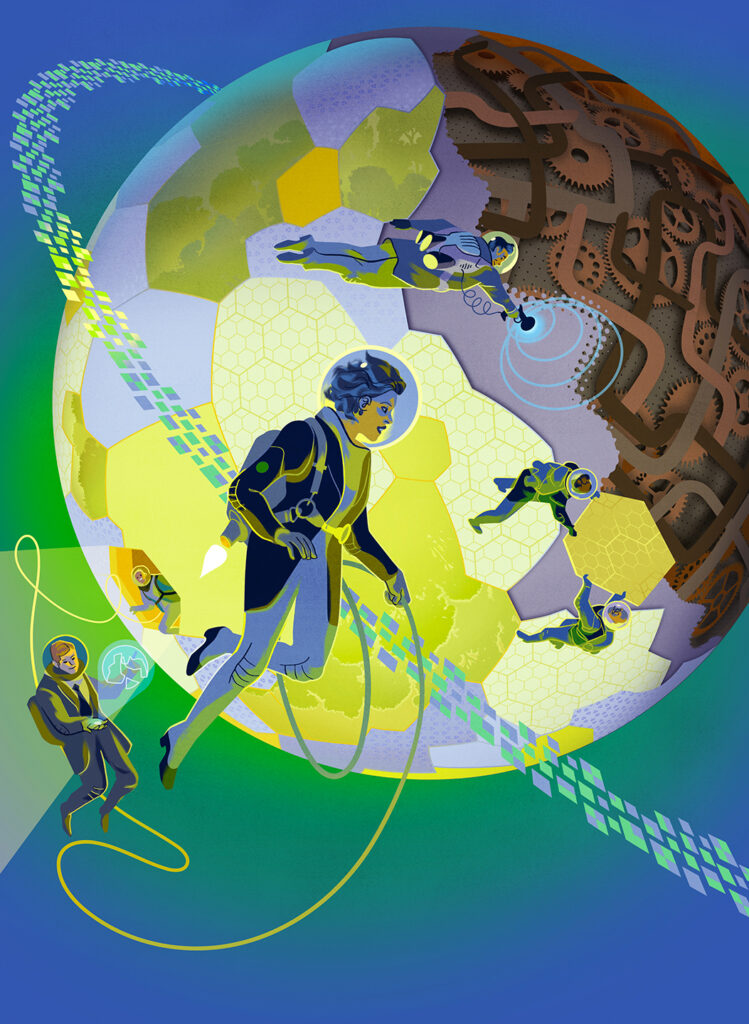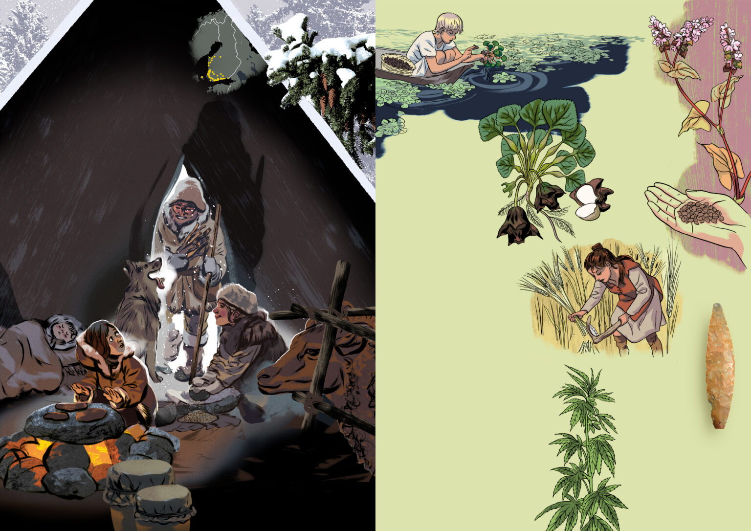 Nuorten tietokirjan "Muutosten maa" kuvitus ja taitto / Otava