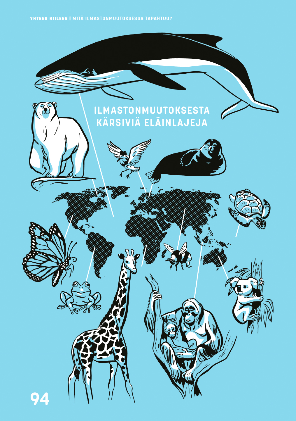 Kuvitus ja graafinen suunnittelu nuorten tietokirjaan "Yhteen Hiileen" / Tammi