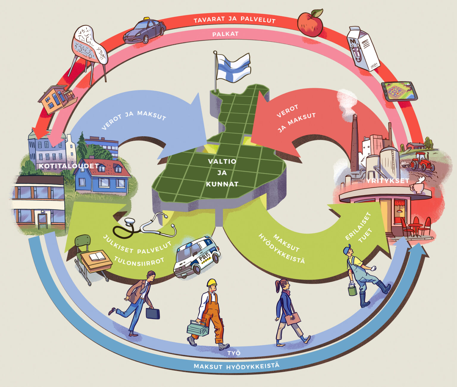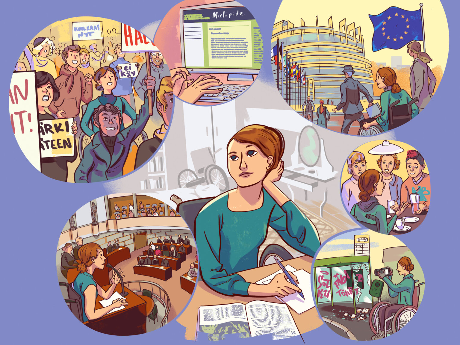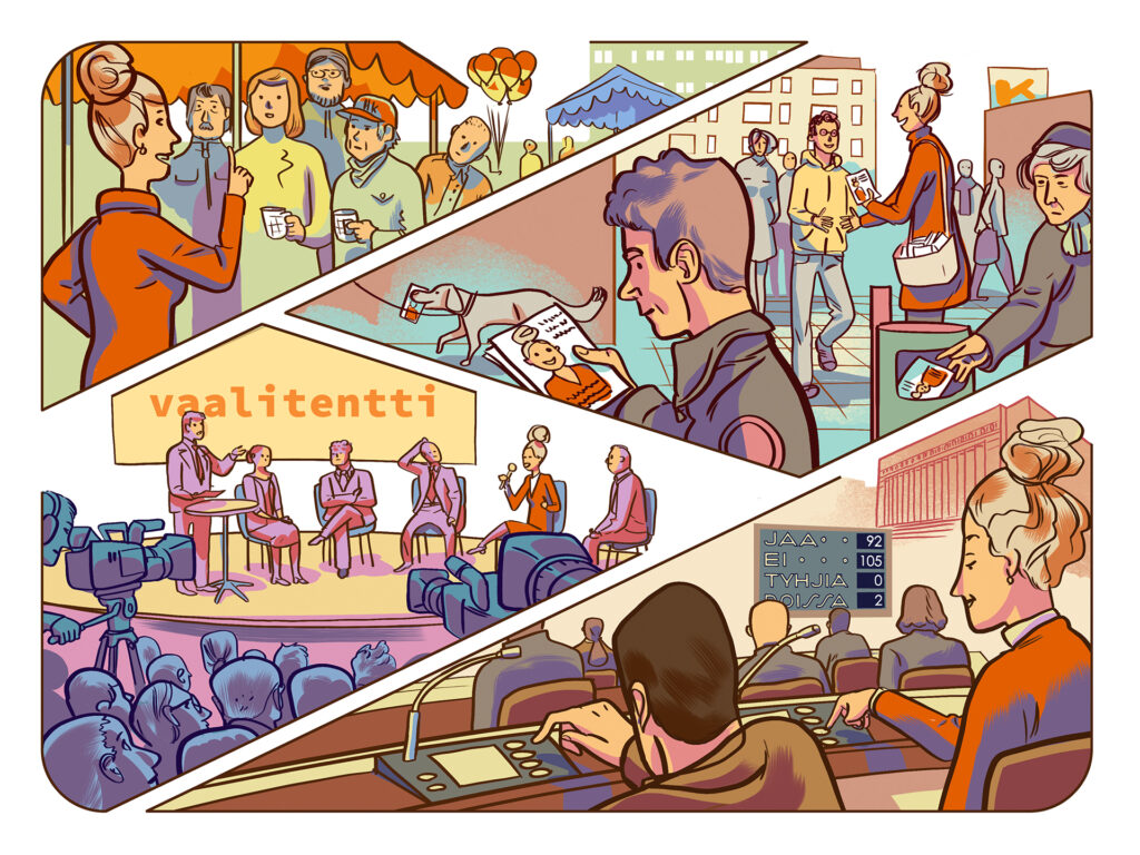 Kuvitus yläasteen yhteiskuntaopin kirjaan / Otava