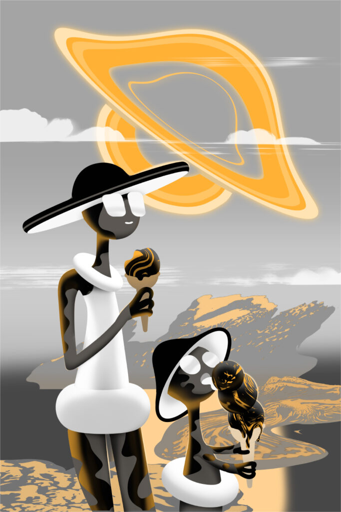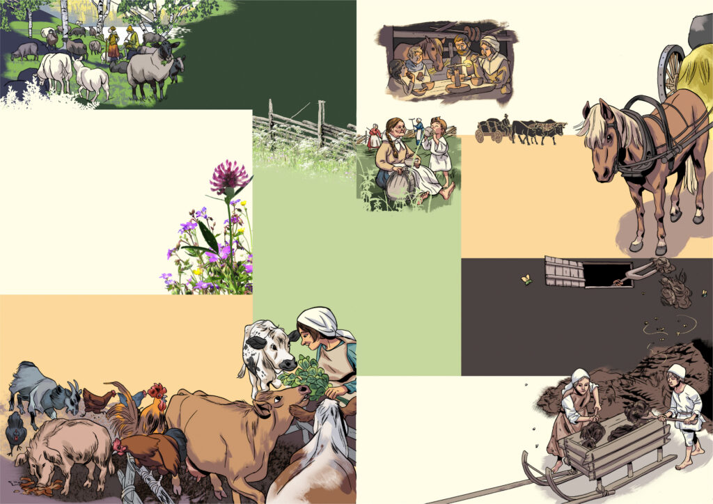 perinteiset maalaus- ja piirrostekiikat yhdistettynä digitaaliseen kuvittamiseen