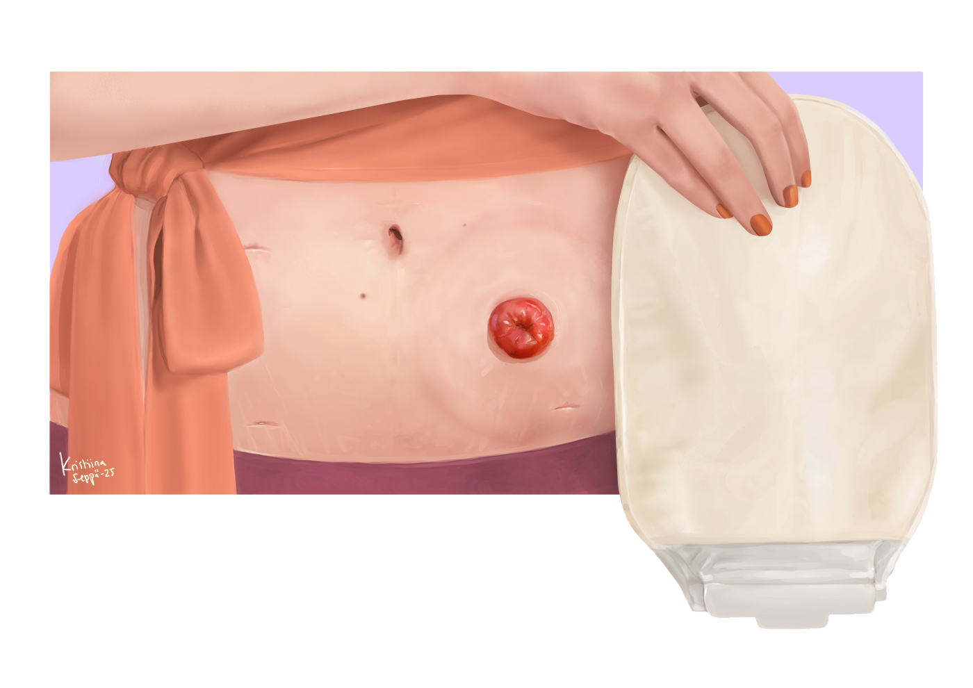 3/ Kuvituskuva Aliisa Kuivaston artikkeliin avannehoitajien tuesta endometrioosipotilaiden kanssa. Julkaistu Endorfiinissa 2/2025.