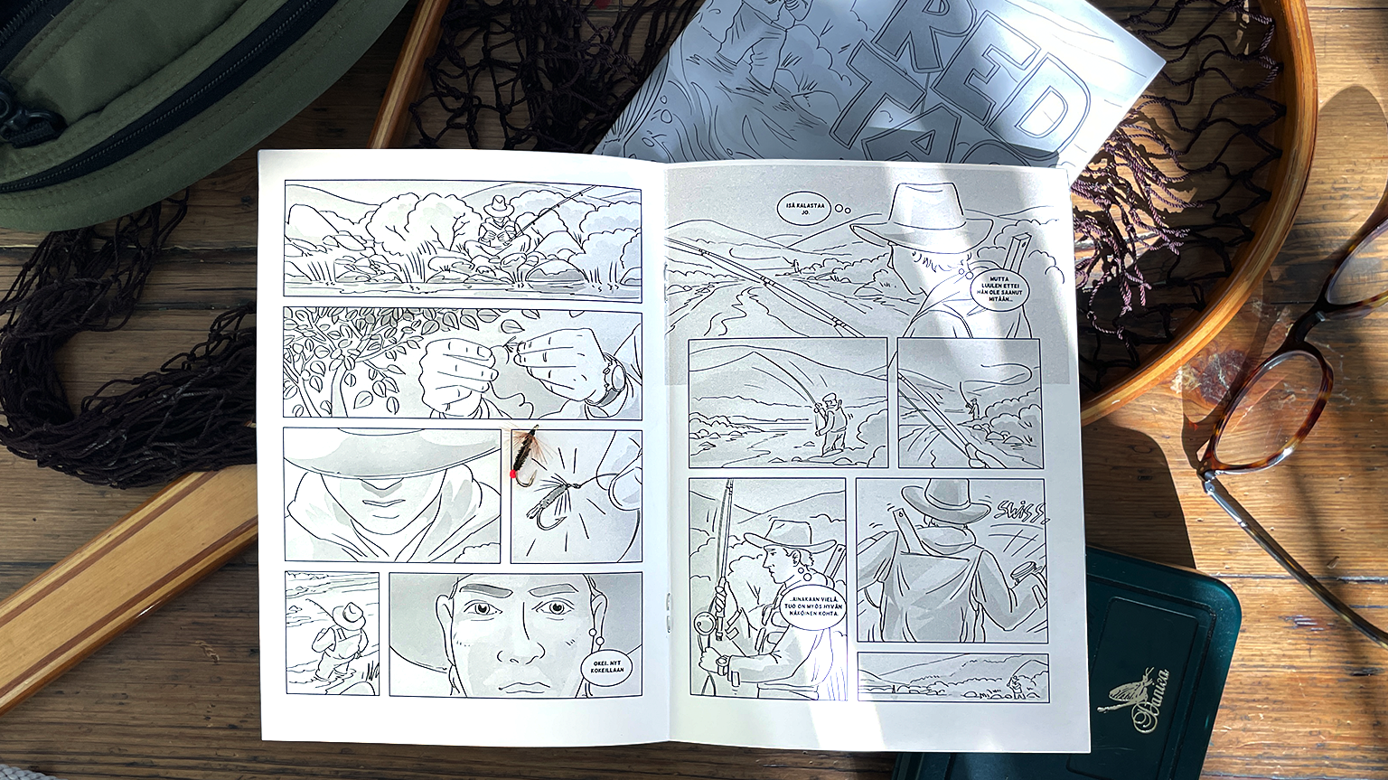 Vuosien mittaan asiakkaille piirrettyjen storyboardien myötä innostuin kokeilemaan onnistuisiko oma lyhytsarjakuvan tekeminen. Aiheeksi valikoitui kalastusharrastus ja tyyliksi myös storyboardien teossa käyttämäni nopea realismiin tukeutuva viivapiirros sävytettynä kevyesti harmaasävyillä. Sarjakuva on lyhyt 16 sivun mittainen tarina.