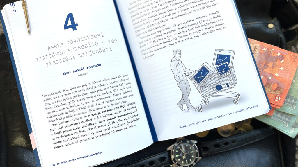 Kansikuvitus ja vinjettikuvitukset Seppo Saarion Näin sijoitat pörssiosakkeisiin -opas nuorelle kirjaan. Kuvituksella pyrittiin keventämään muuten asiapitoista tekstiä, mutta haluttiin pysyä realistisessa tyylissä ja asiallisessa kuvauksessa.
