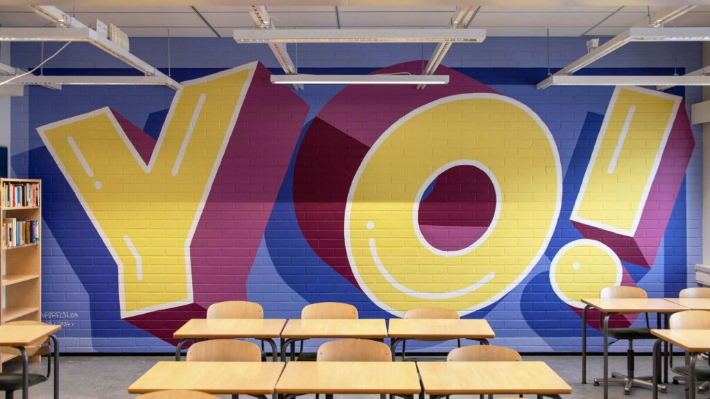 YO!-seinämaalauksen tein Vantaan Martinlaakson lukion suomen kielen luokkaan. Teos leikittelee sanan ”yo” kaksoismerkityksellä suomen kielessä – se voi tarkoittaa joko trendikästä rap-musiikista rantautunutta tervehdystä, joka on löytänyt tiensä nuorisoslangiin, taikka viitata ylioppilastutkintoon tai -kirjoituksiin, jotka tietysti ovat kaikkien lukiolaisten viimeinen virstanpylväs.
